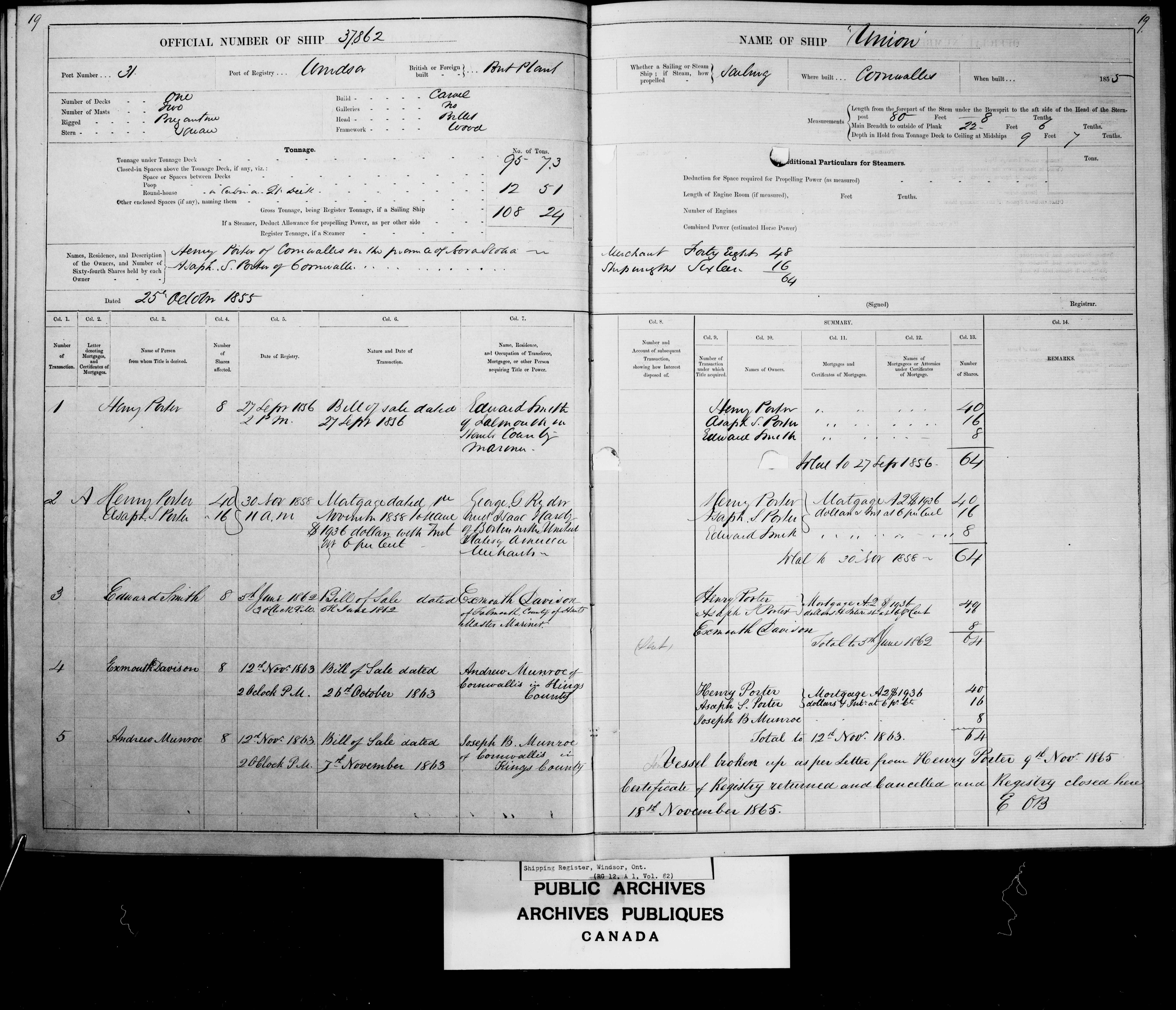Windsor, Nova Scotia Registrar of Shipping - 2455