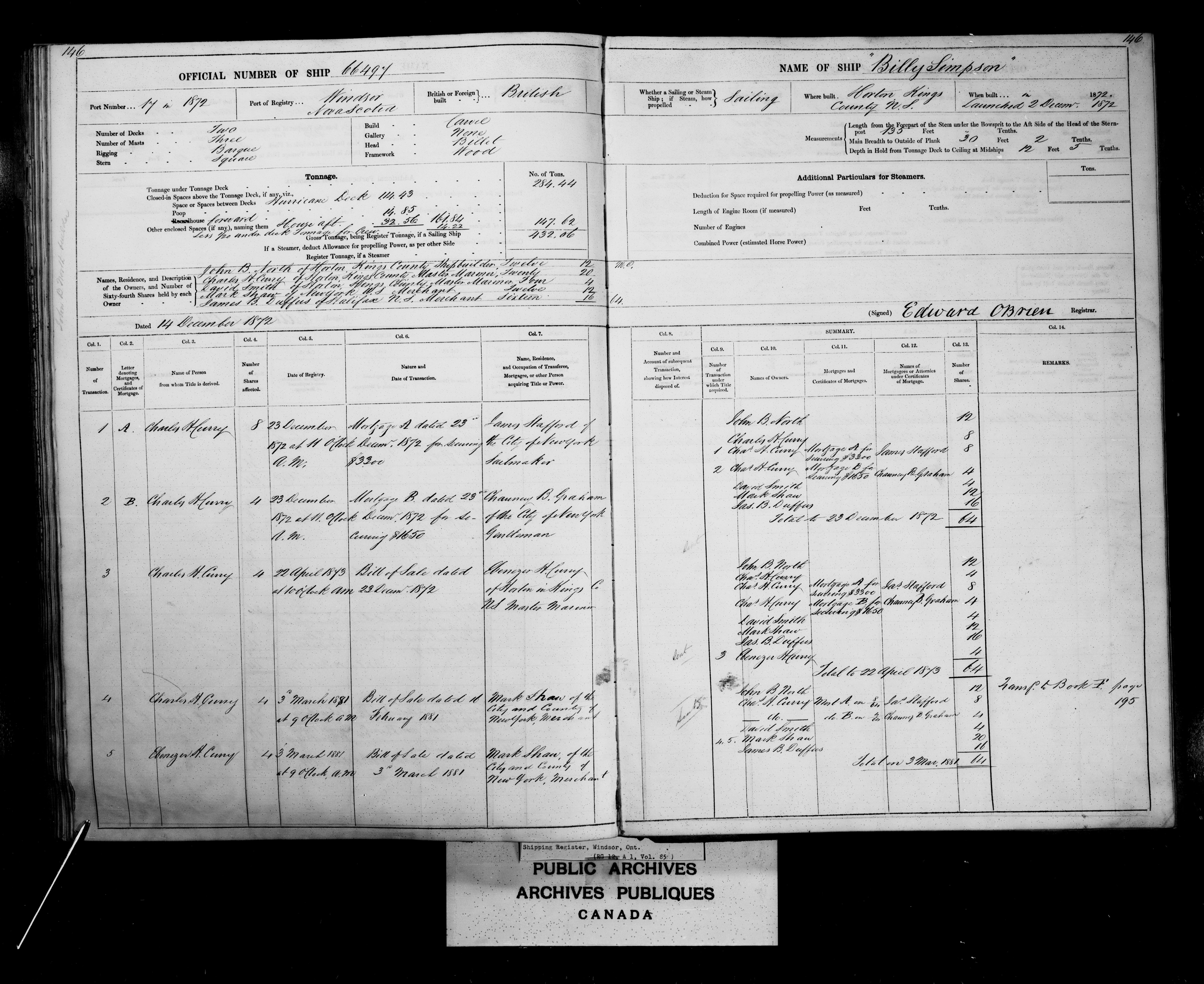 Windsor, Nova Scotia Registrar of Shipping - 2456