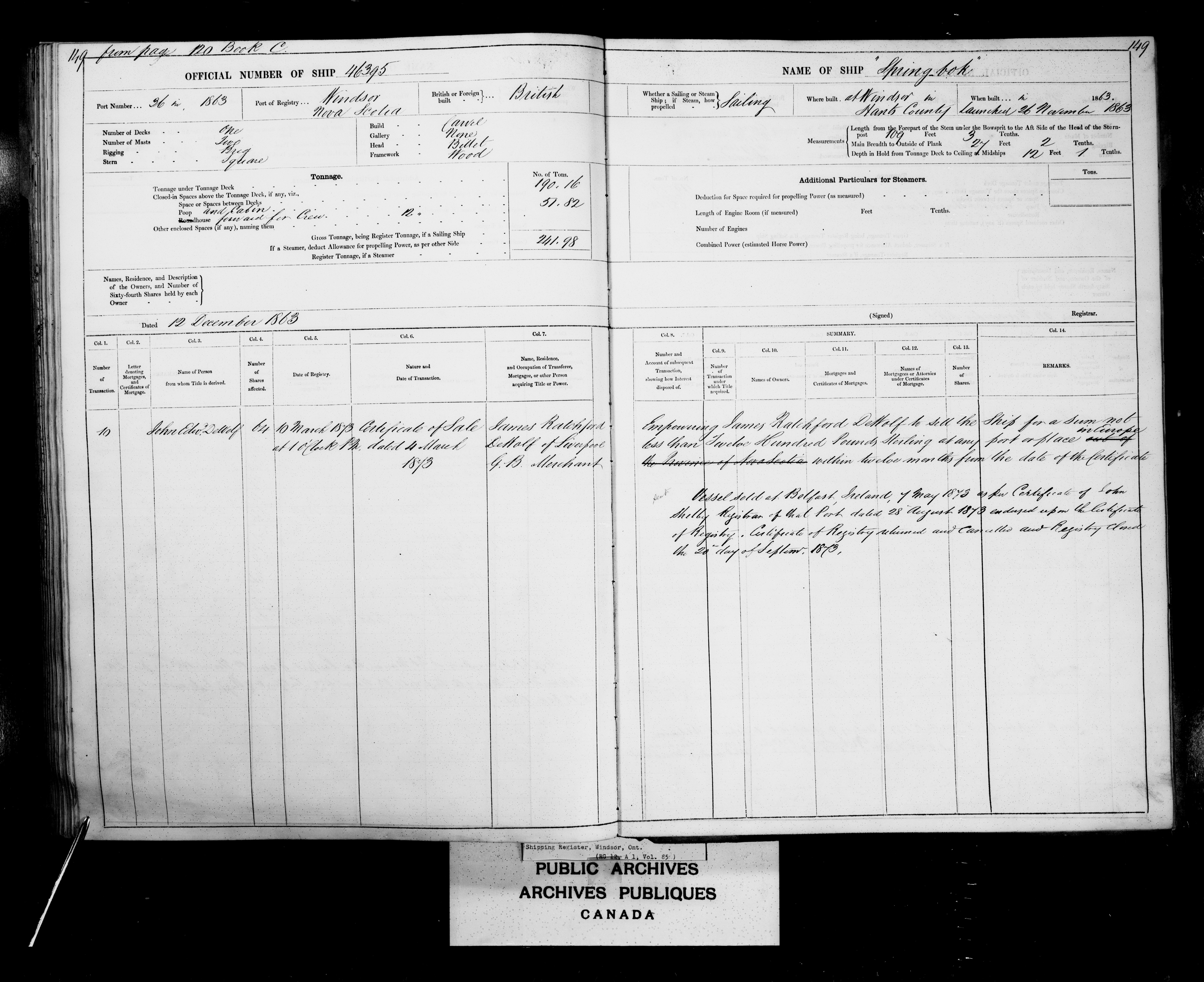 Windsor, Nova Scotia Registrar of Shipping - 2456