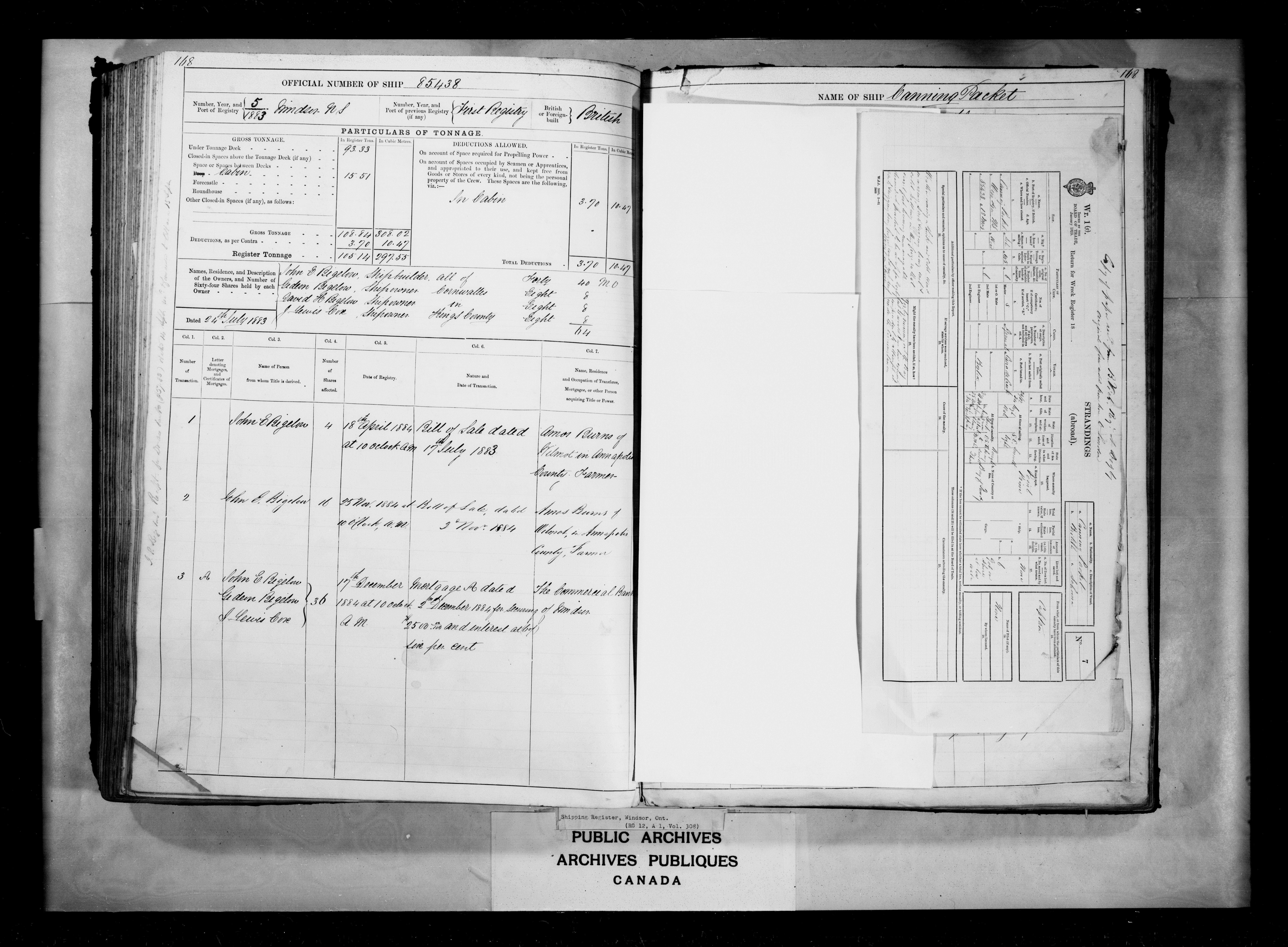 Windsor, Nova Scotia Registrar of Shipping - 2457