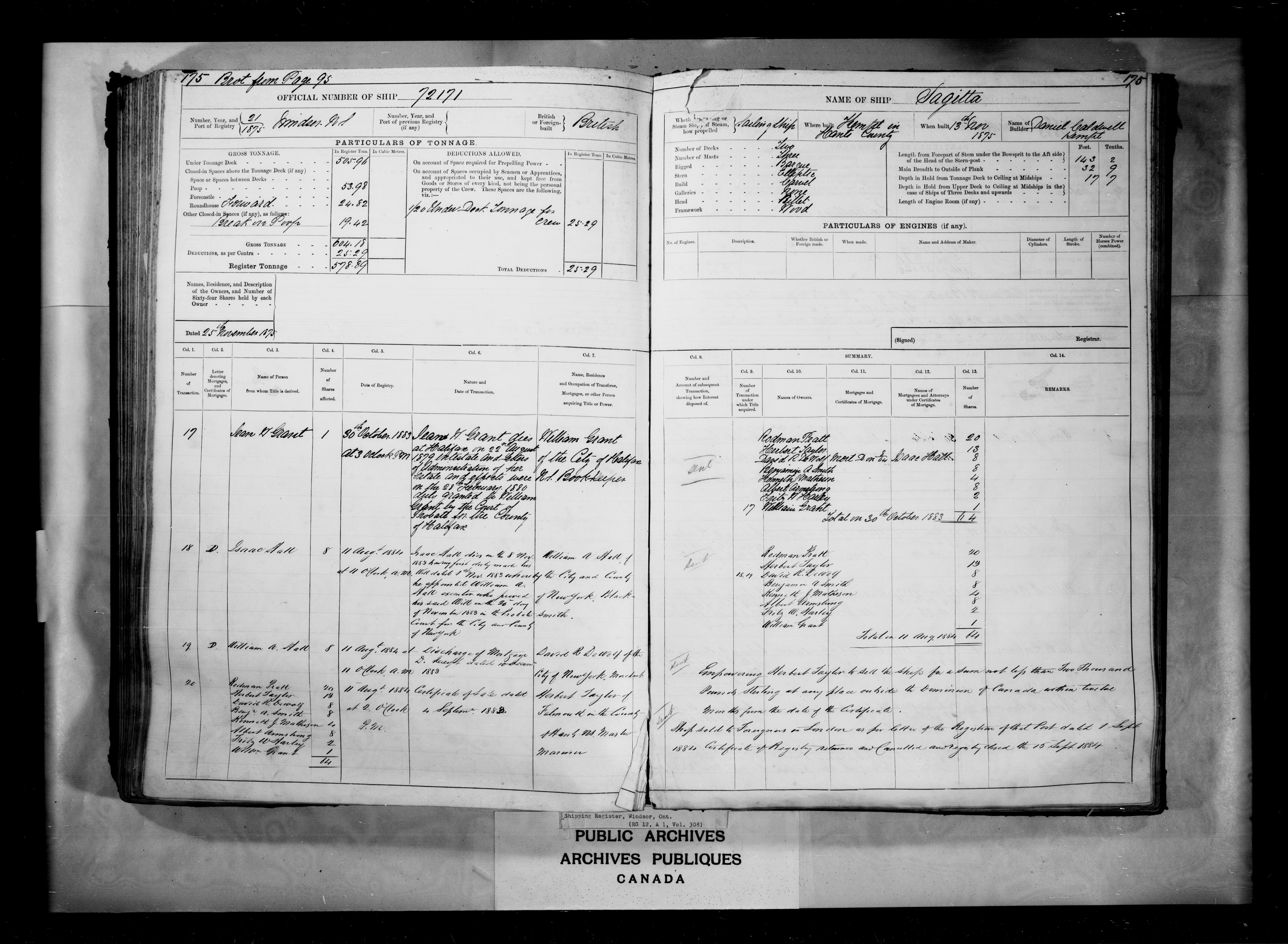 Windsor, Nova Scotia Registrar of Shipping - 2457