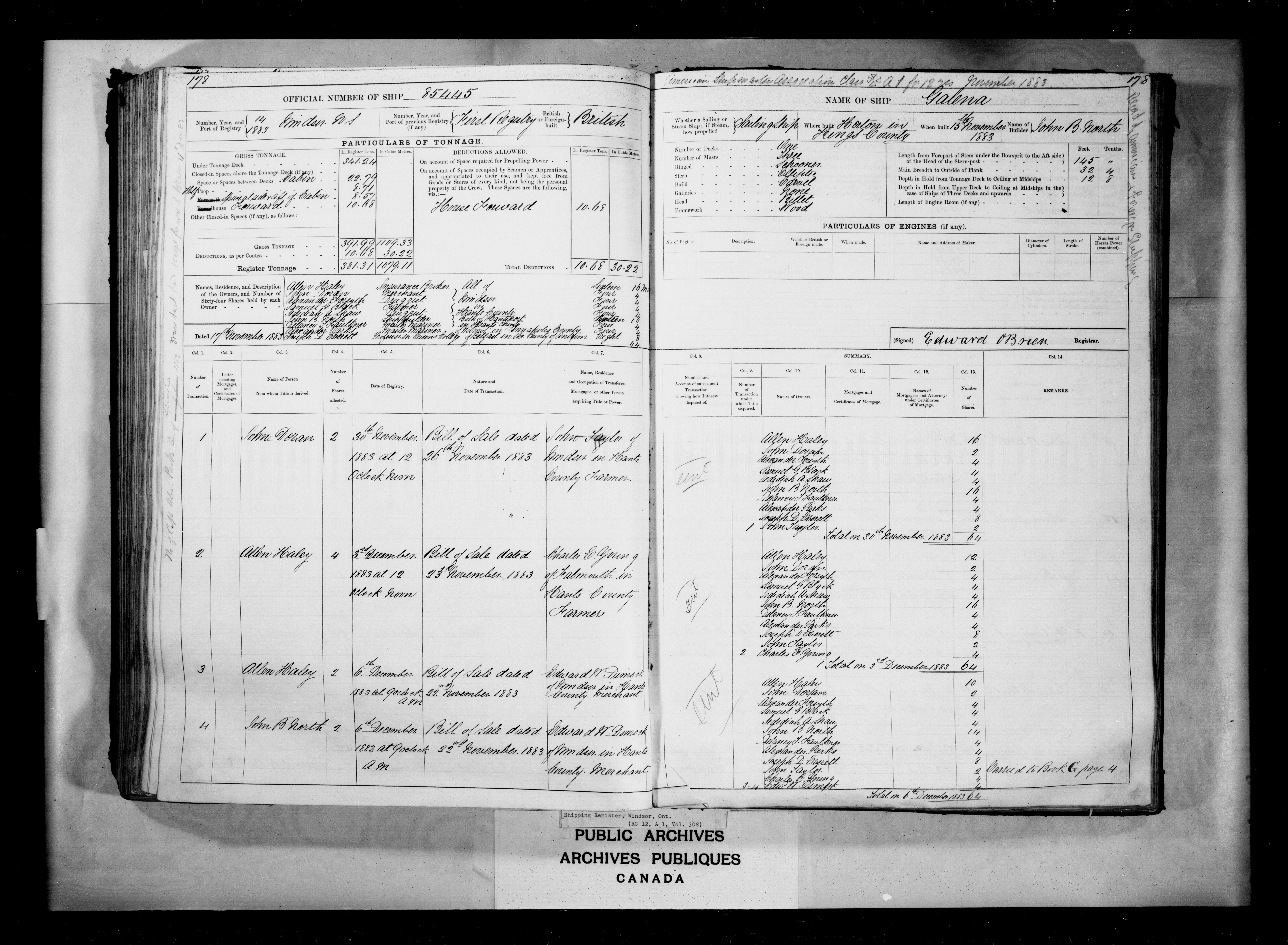 Windsor, Nova Scotia Registrar of Shipping - 2457