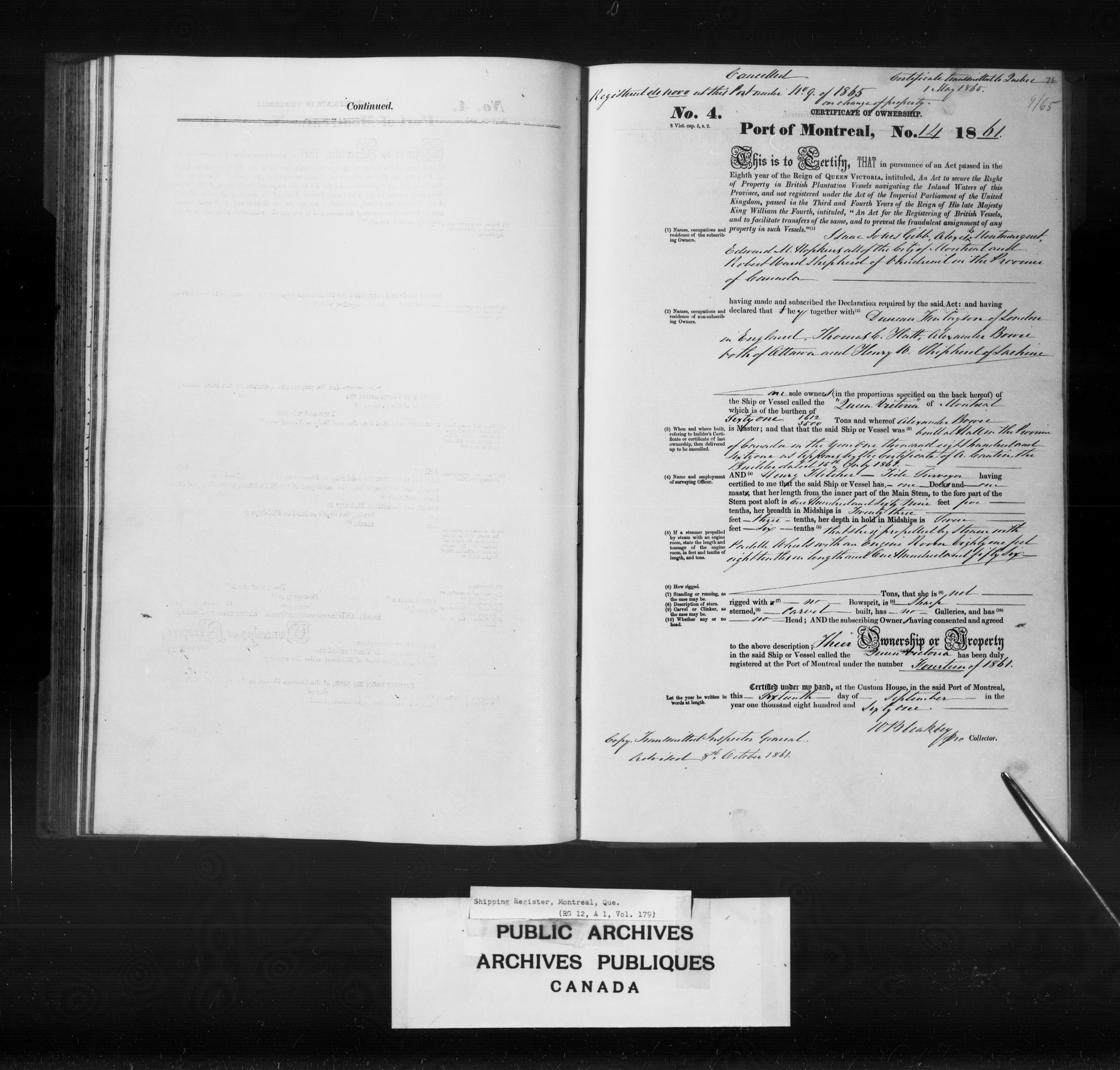 Montréal [Québec] Registrar of Shipping, 1832-1954 : C-2467