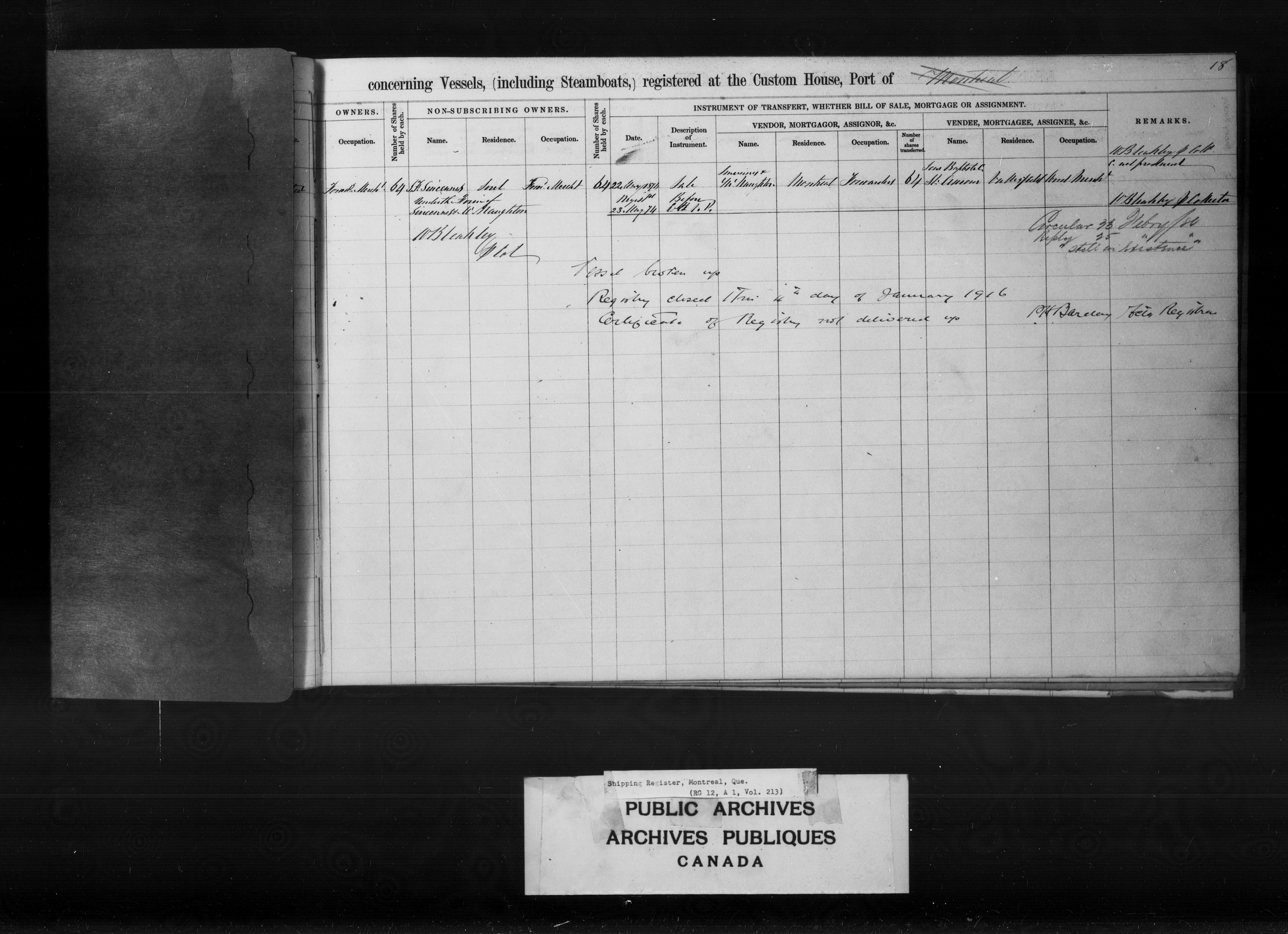 Montréal [Québec] Registrar of Shipping, 1832-1954 : C-2467