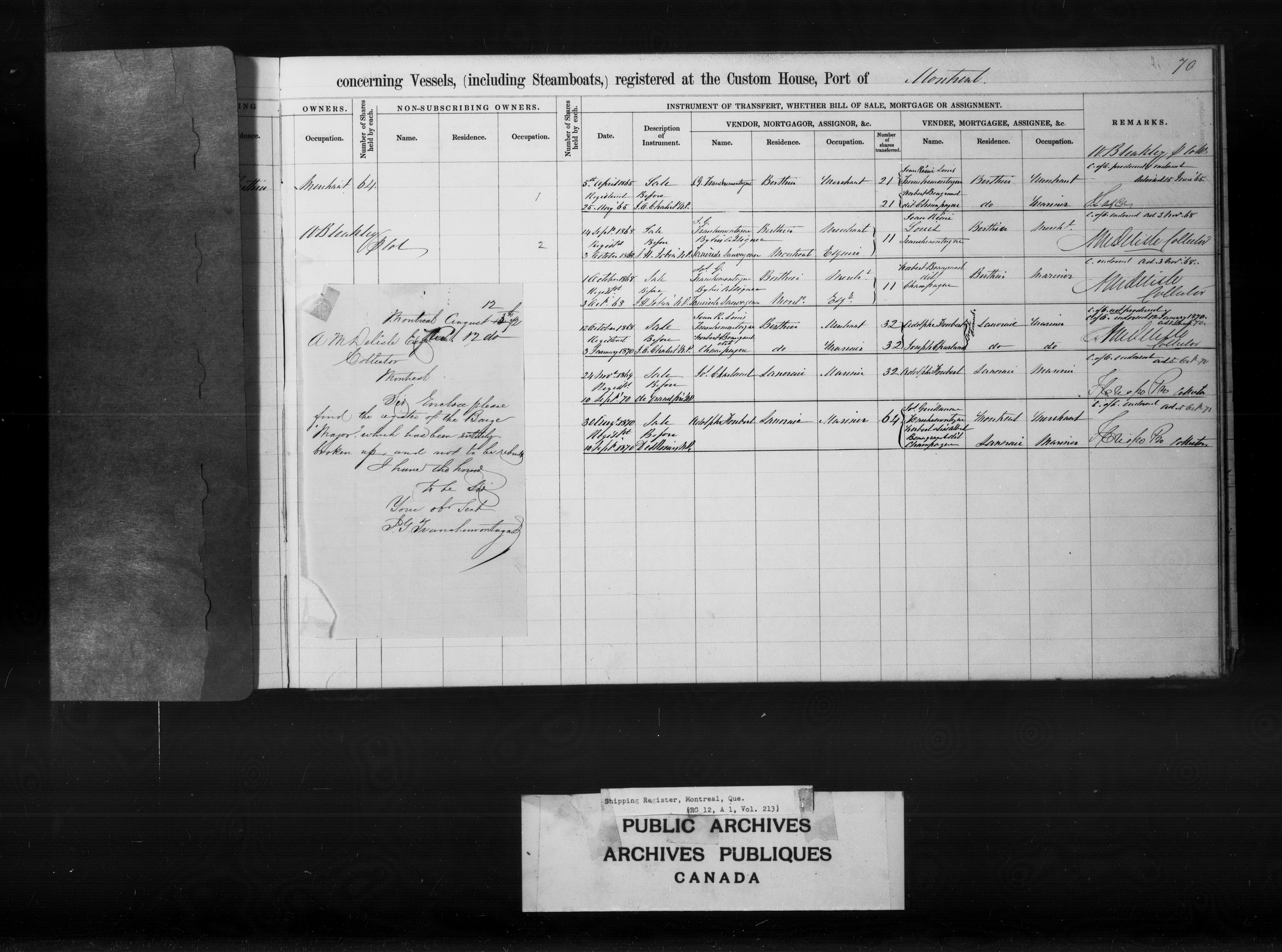 Montréal [Québec] Registrar of Shipping, 1832-1954 : C-2467