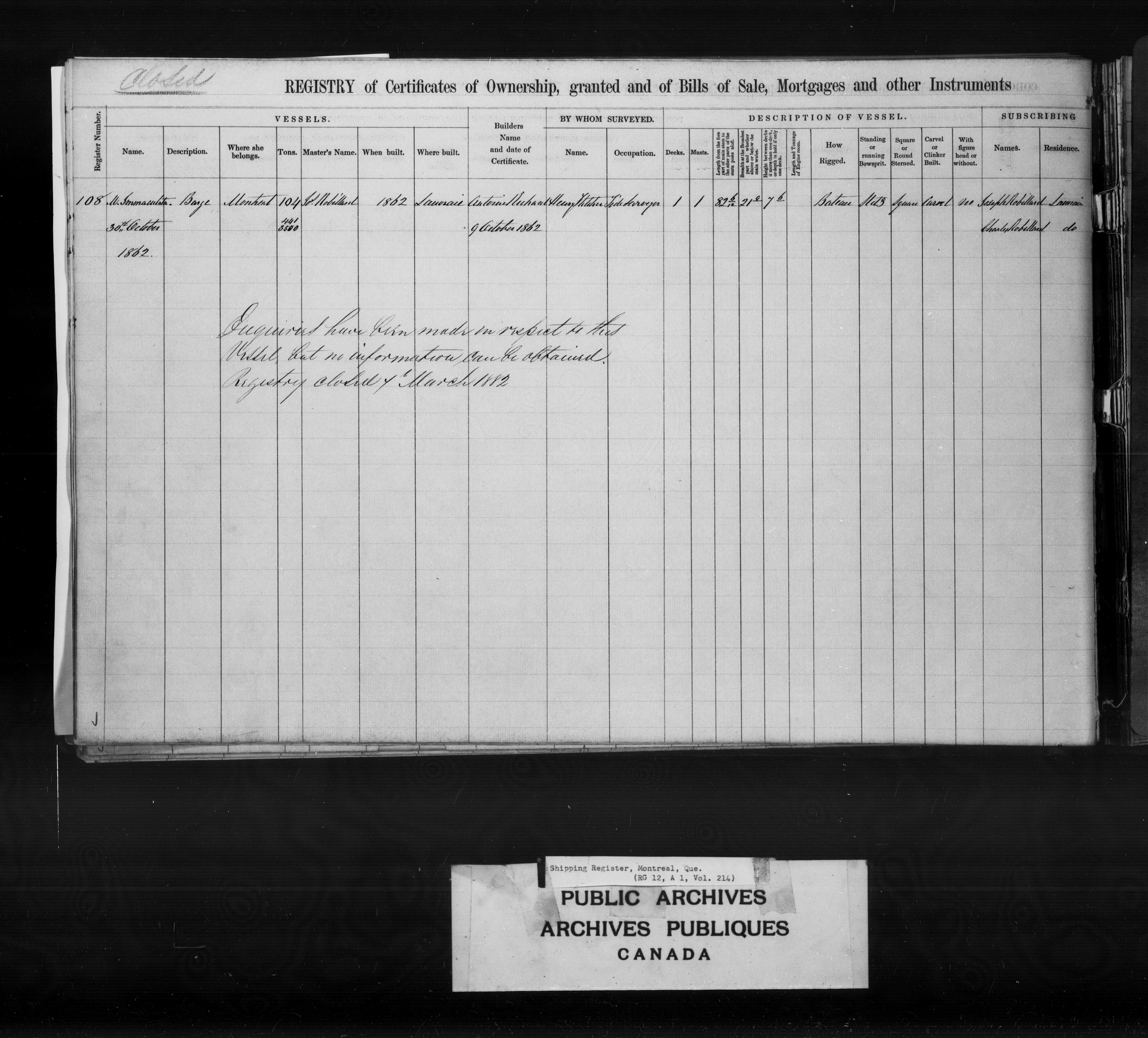 Montréal [Québec] Registrar of Shipping, 1832-1954 : C-2467