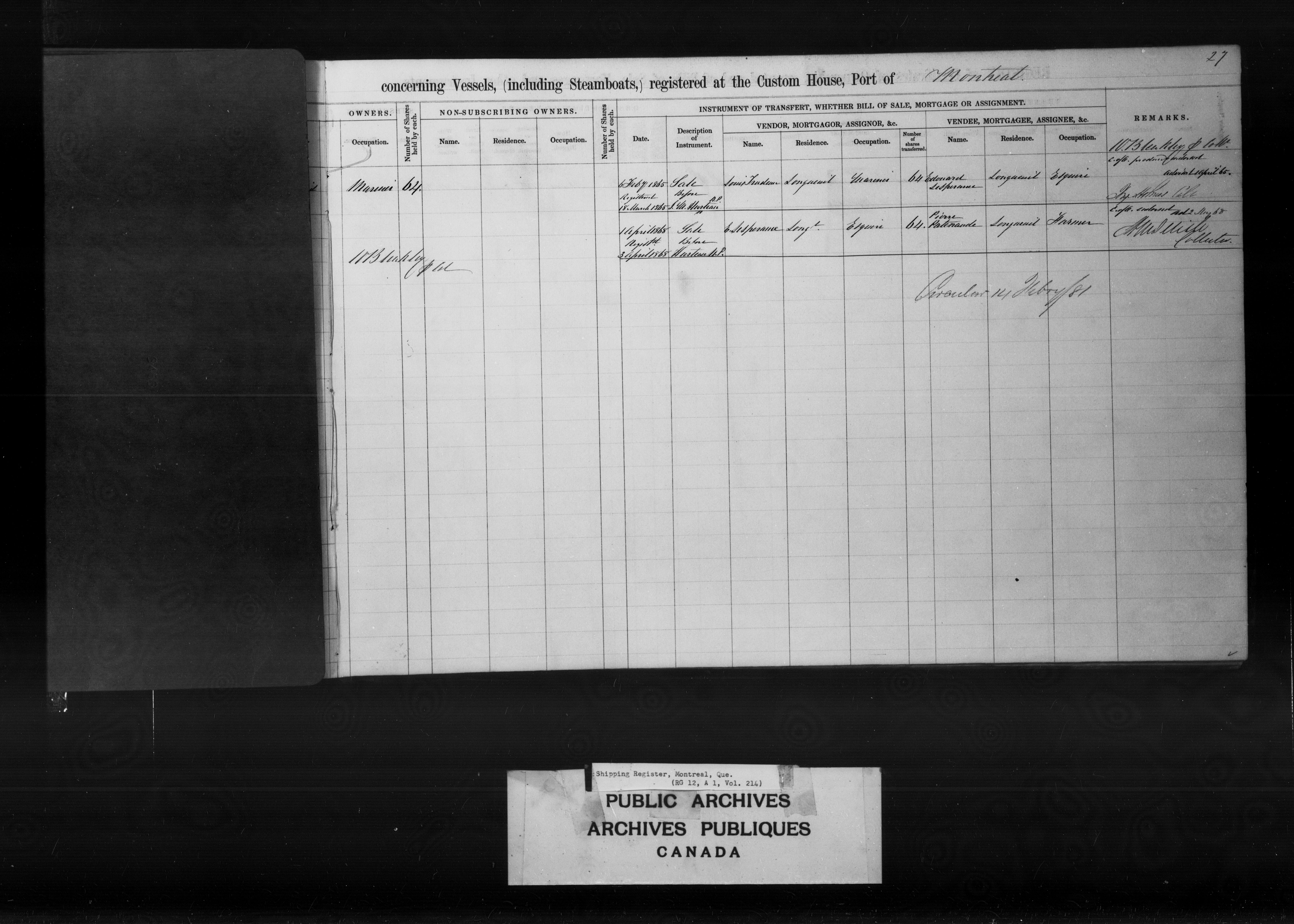 Montréal [Québec] Registrar of Shipping, 1832-1954 : C-2467