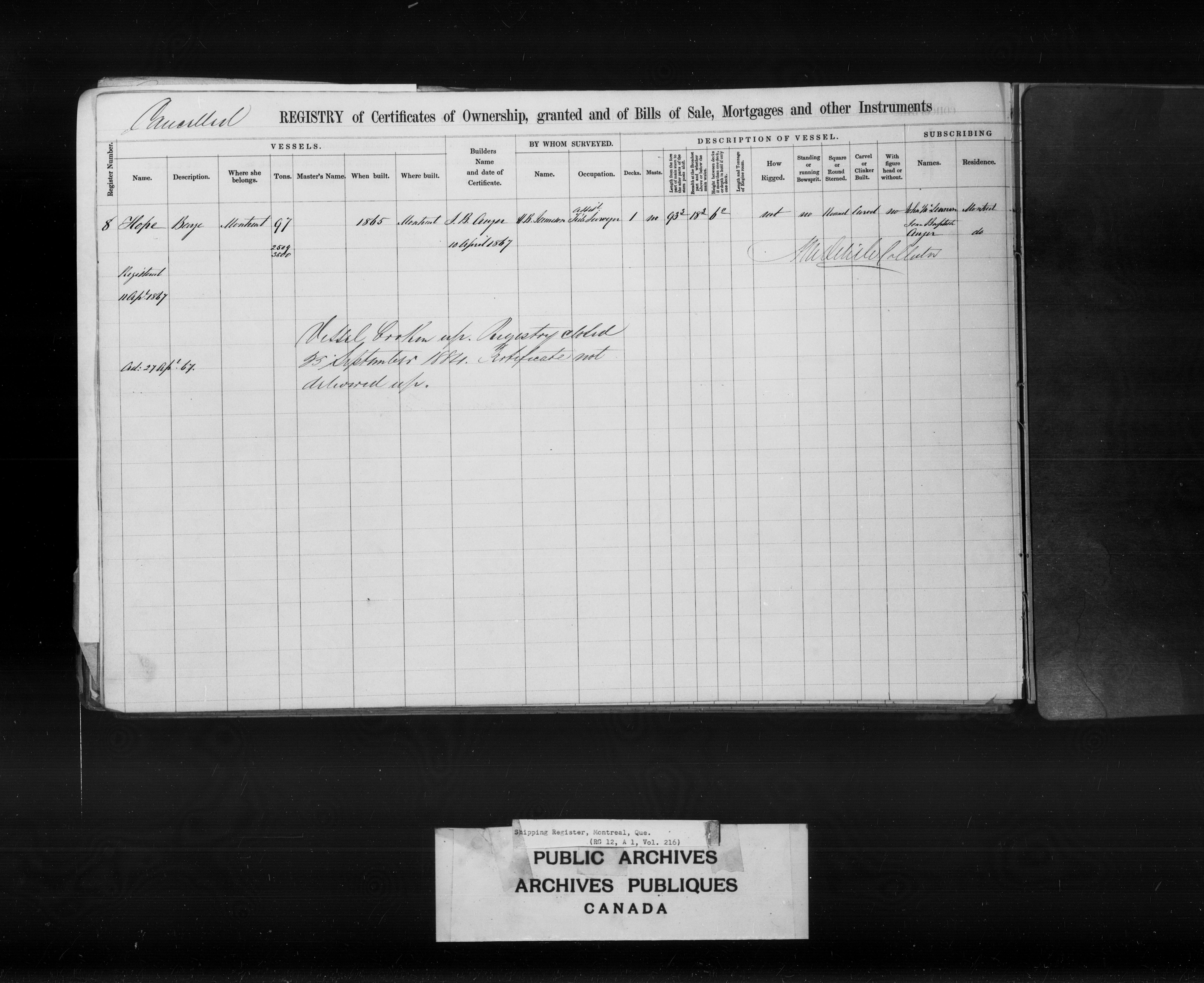 Montréal [Québec] Registrar of Shipping, 1832-1954 : C-2468