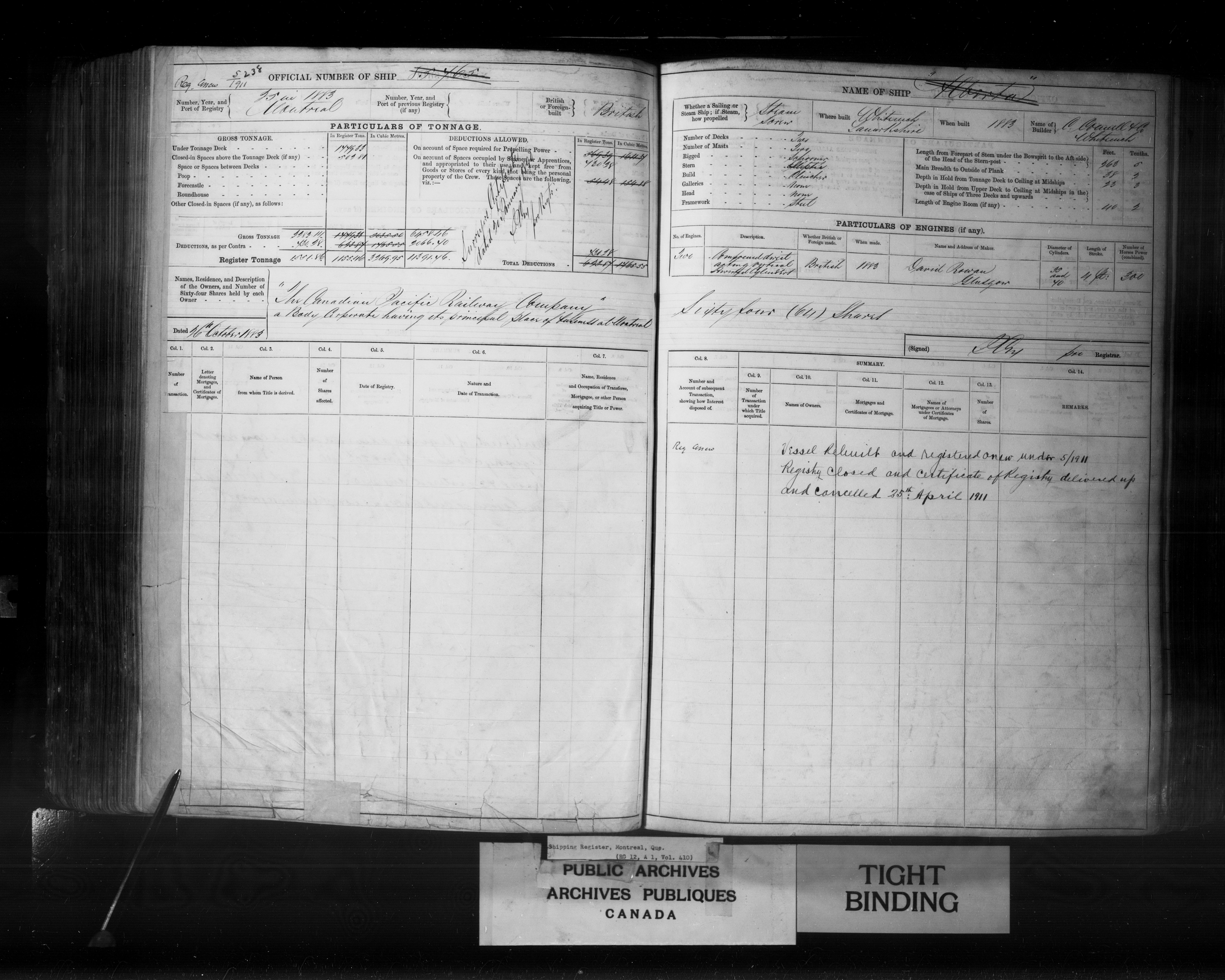 Montréal [Québec] Registrar of Shipping, 1832-1954 : C-2469