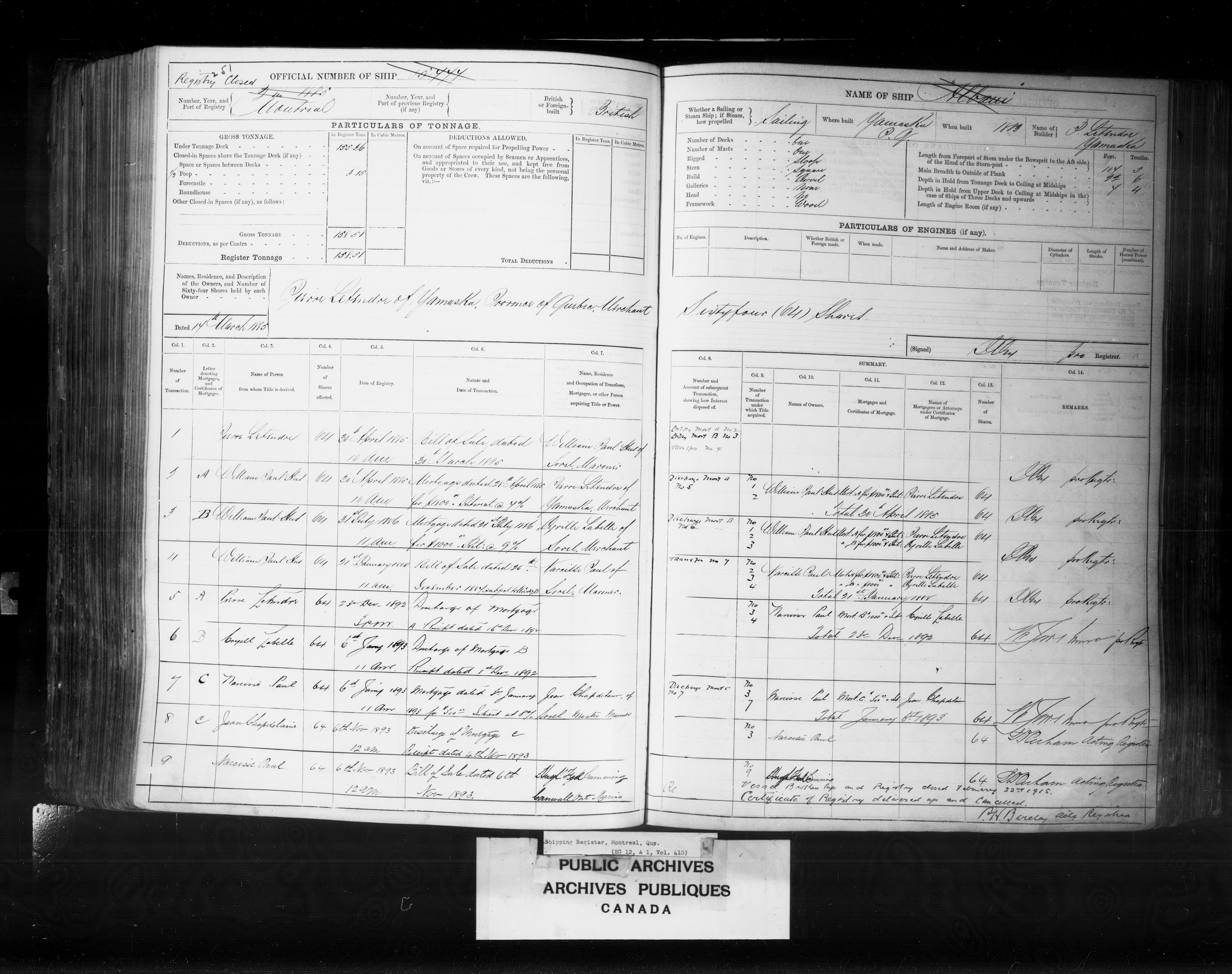 Montréal [Quebec] Registrar of Shipping - 2469