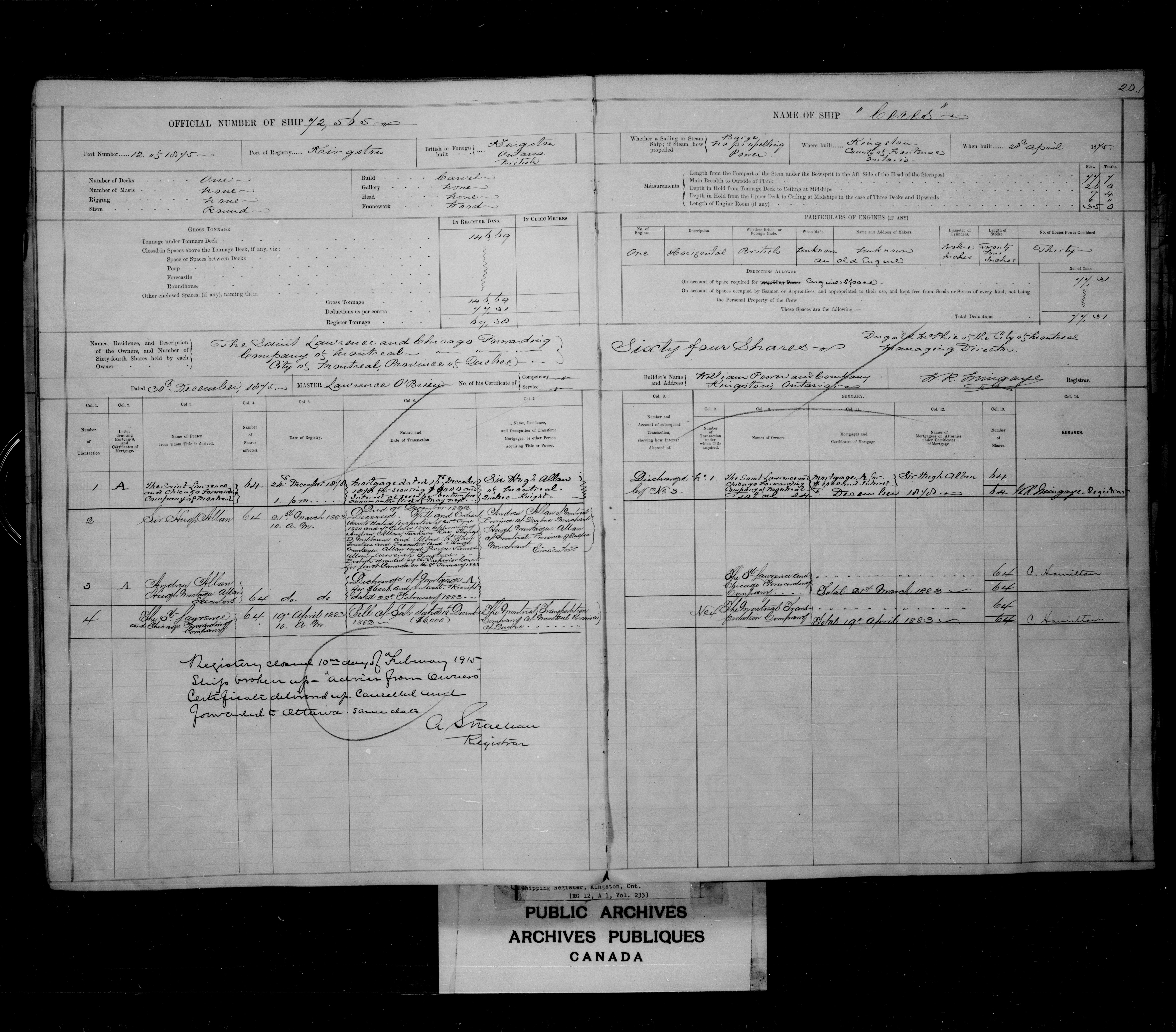 Kingston [Ontario] Registrar of Shipping, 1846-1908 : C-2473