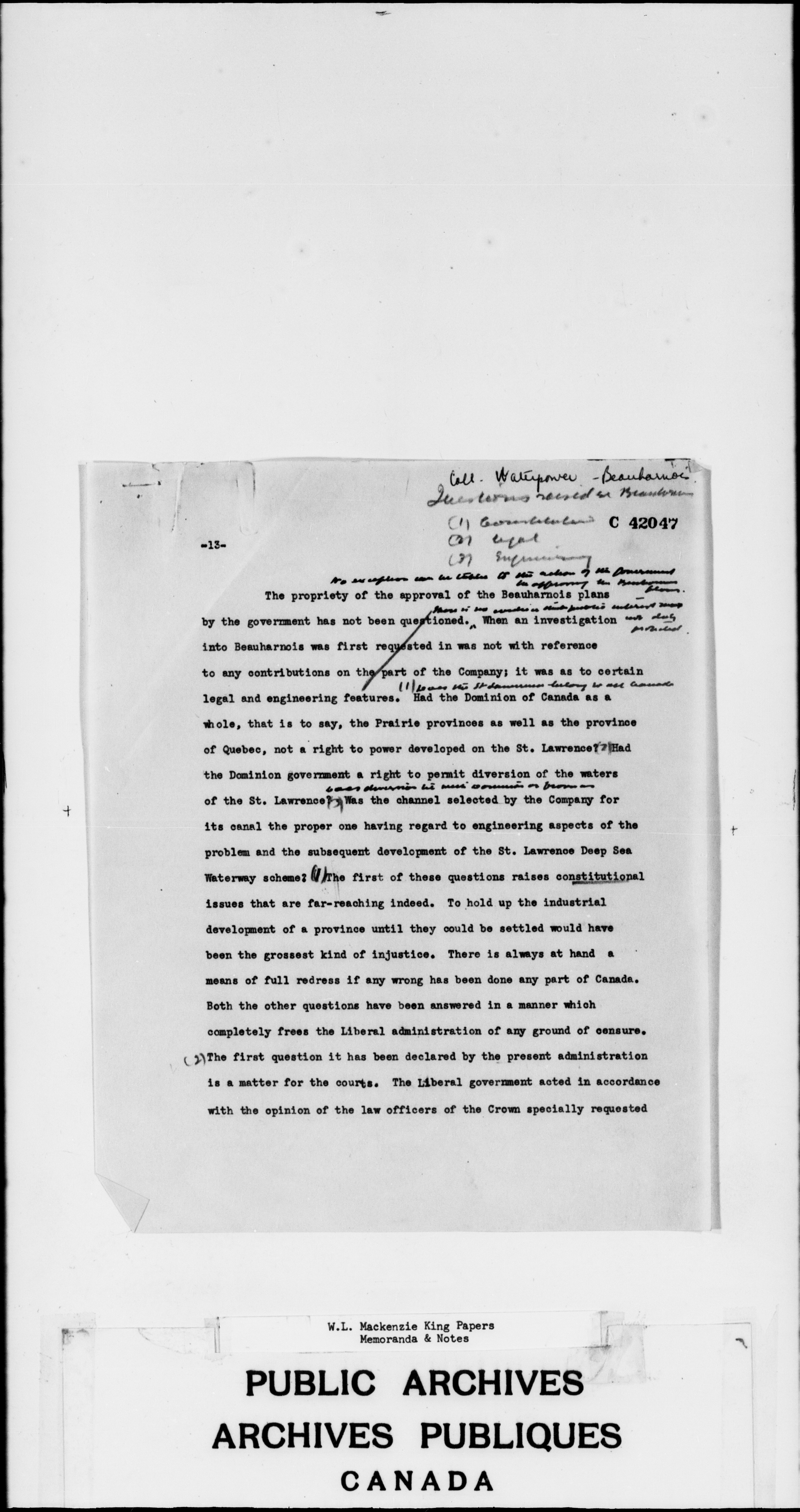 William Lyon Mackenzie King : Memoranda and Notes - 2476