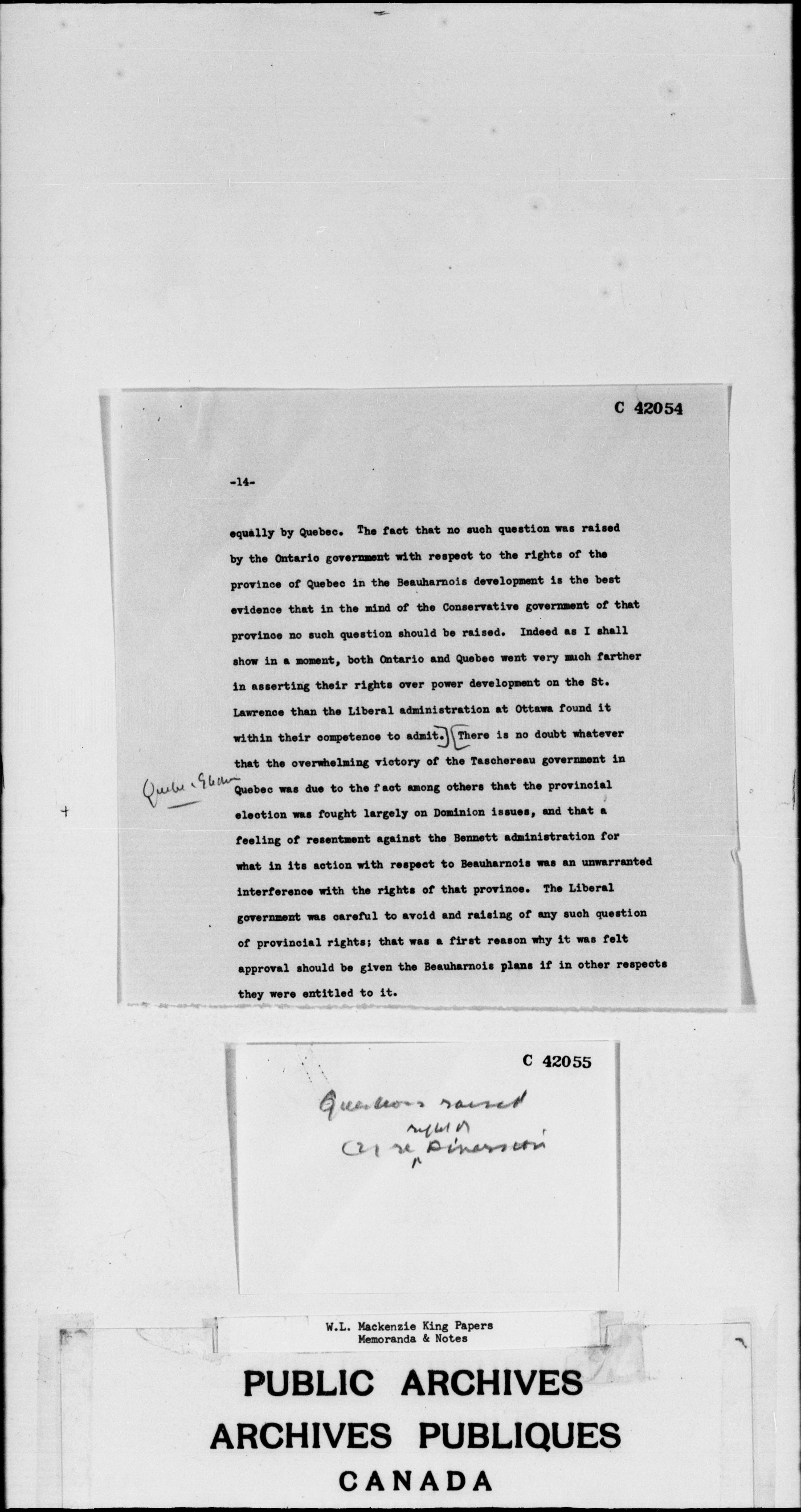 William Lyon Mackenzie King : Memoranda and Notes - 2476