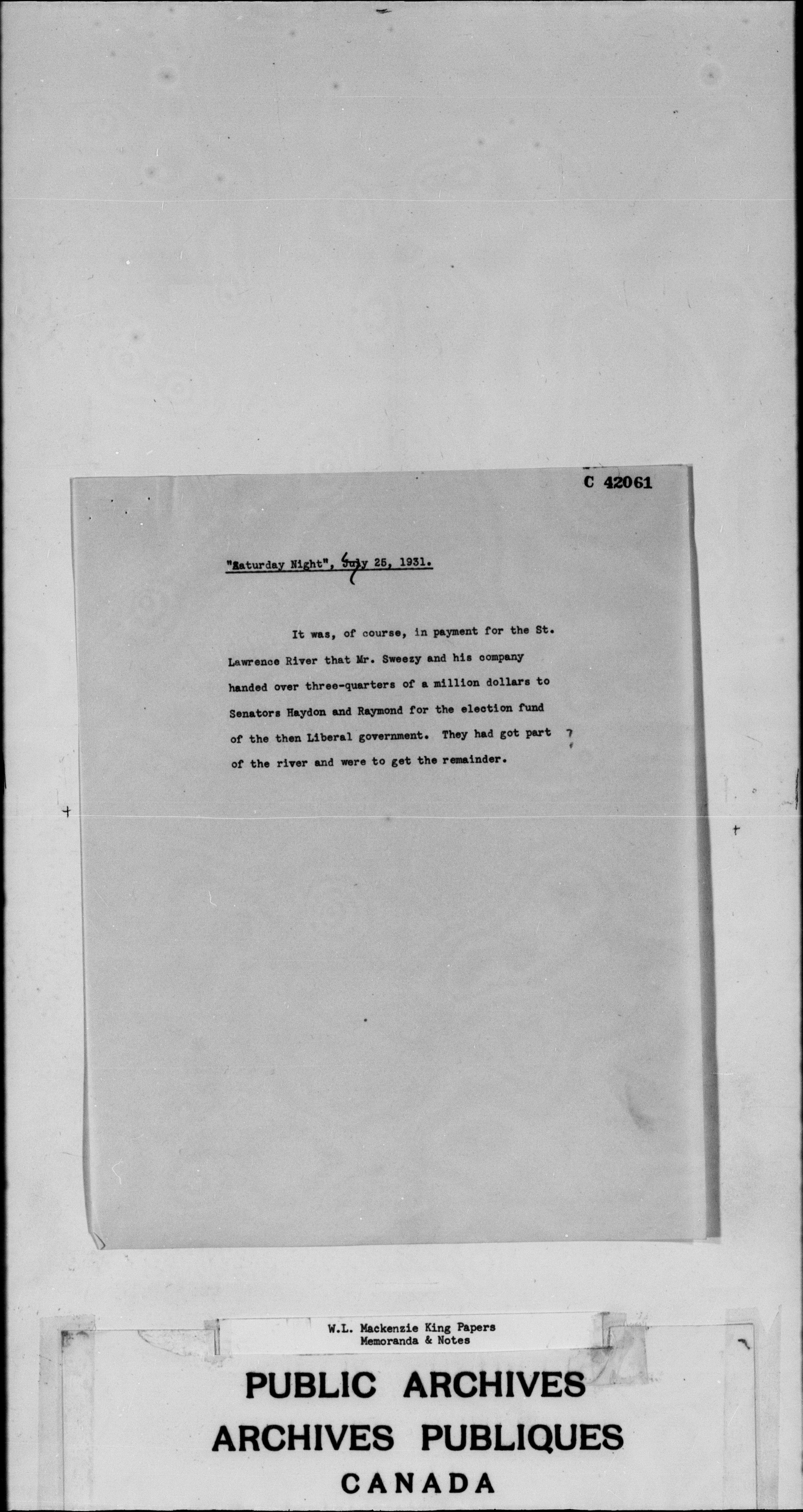 William Lyon Mackenzie King : Memoranda and Notes - 2476
