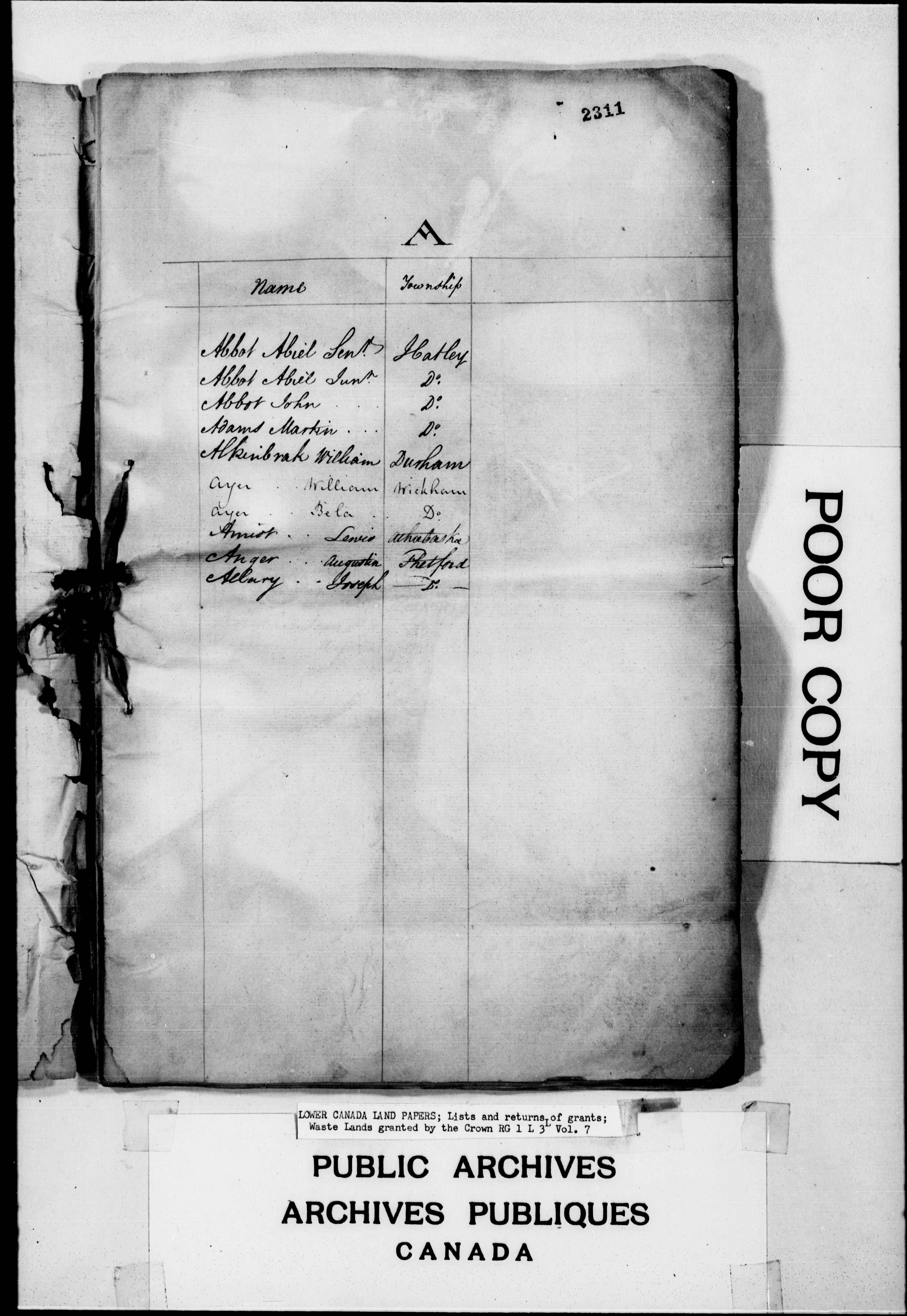 Lower Canada Land Papers - 2494
