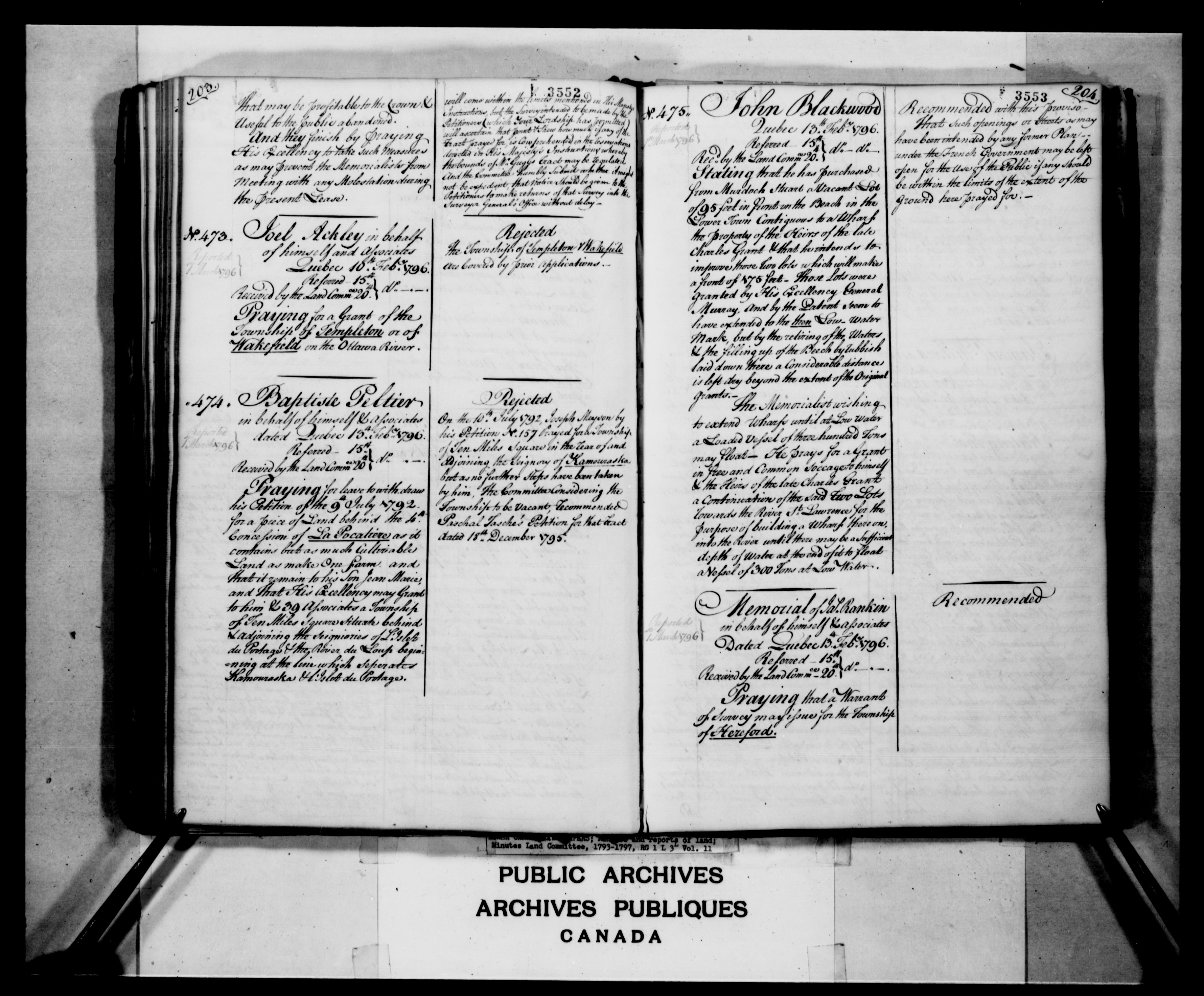 Lower Canada Land Papers : Lists and returns of petitions, applications, grants and patentees - 2495