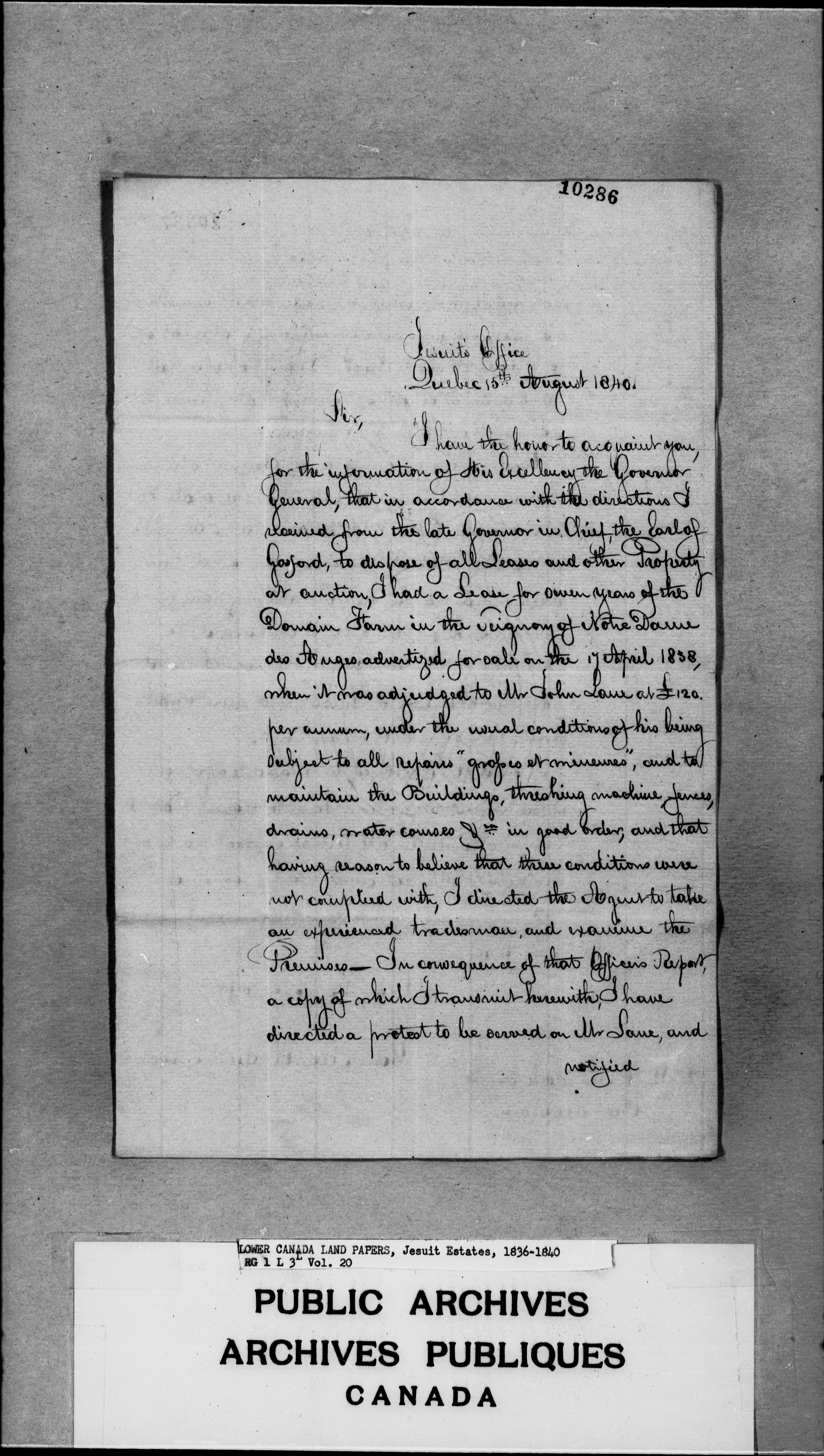 Lower Canada Land Papers : Jesuits Estates - 2500