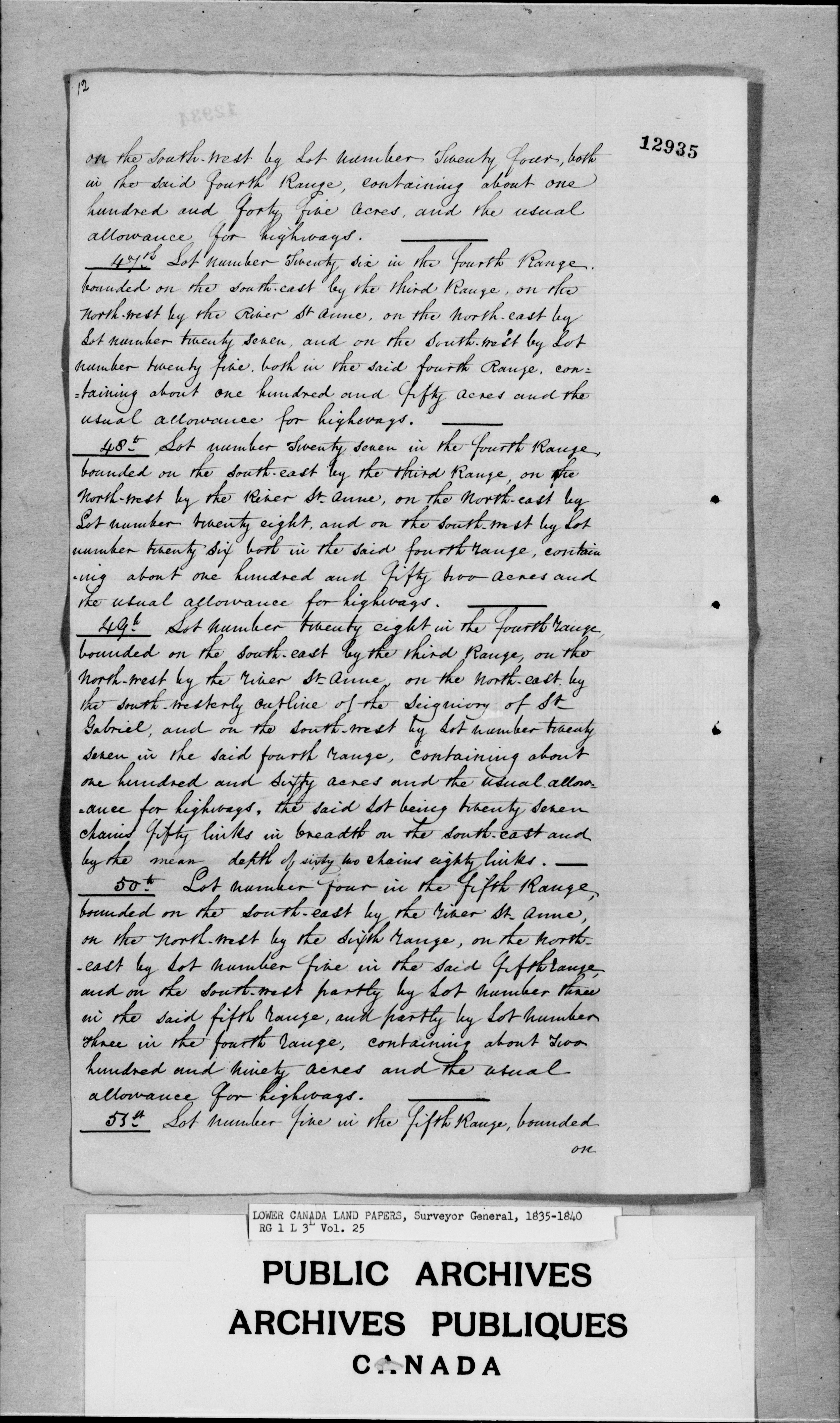 Lower Canada Land Papers : Surveyor General - 2502