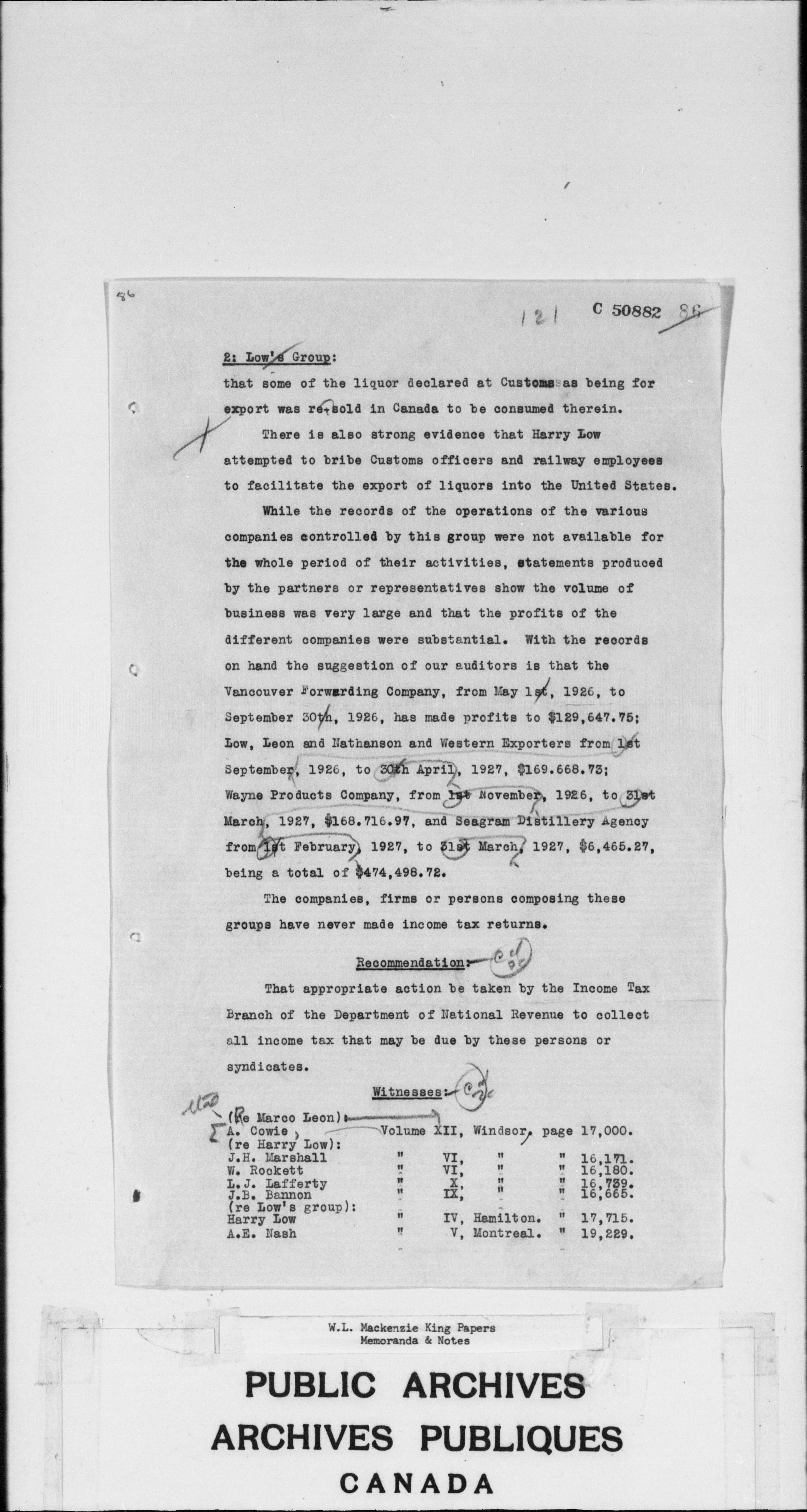 William Lyon Mackenzie King : Memoranda and notes (J4) : C-2576