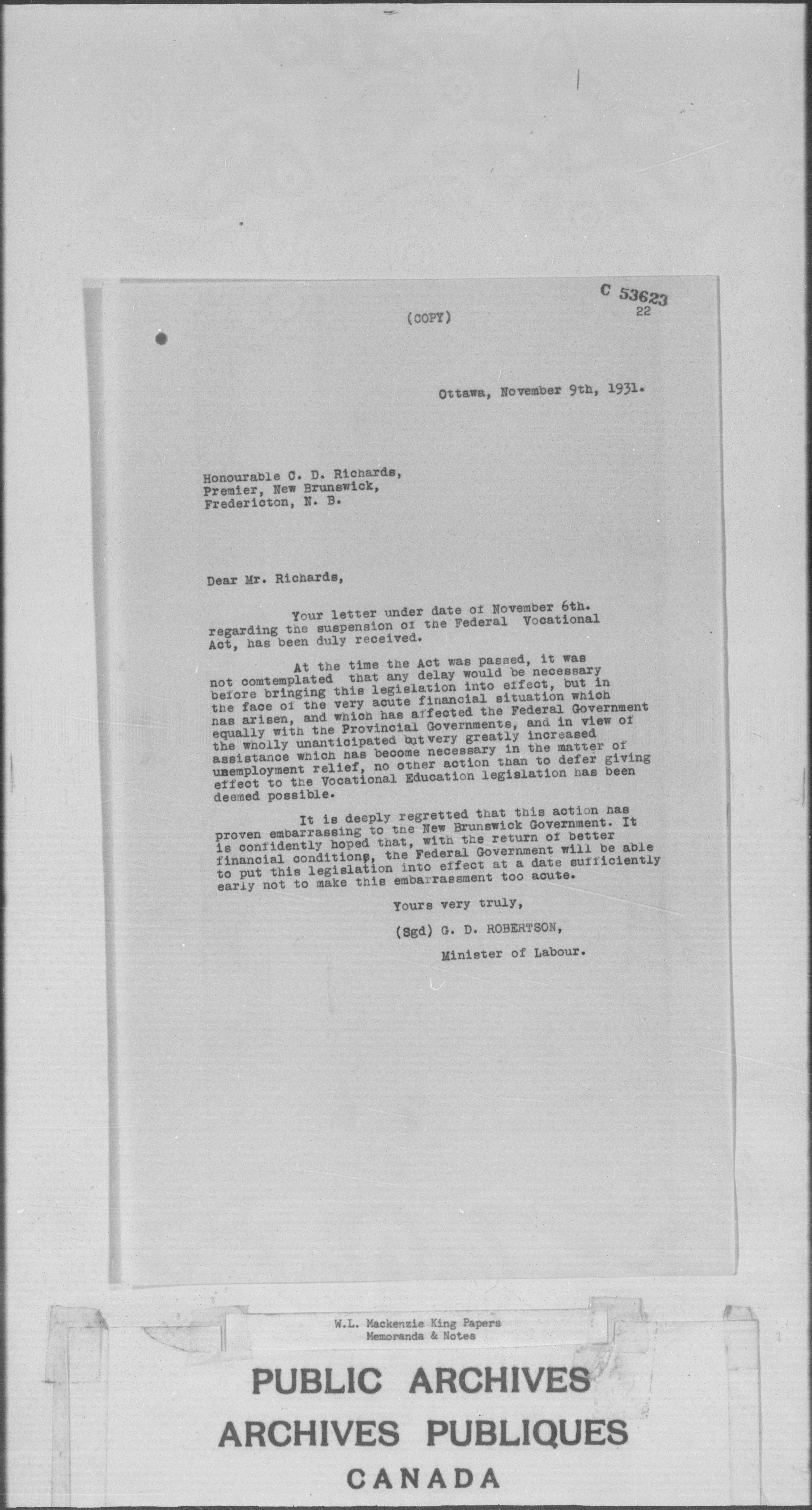 William Lyon Mackenzie King : Memoranda and notes (J4) : C-2623