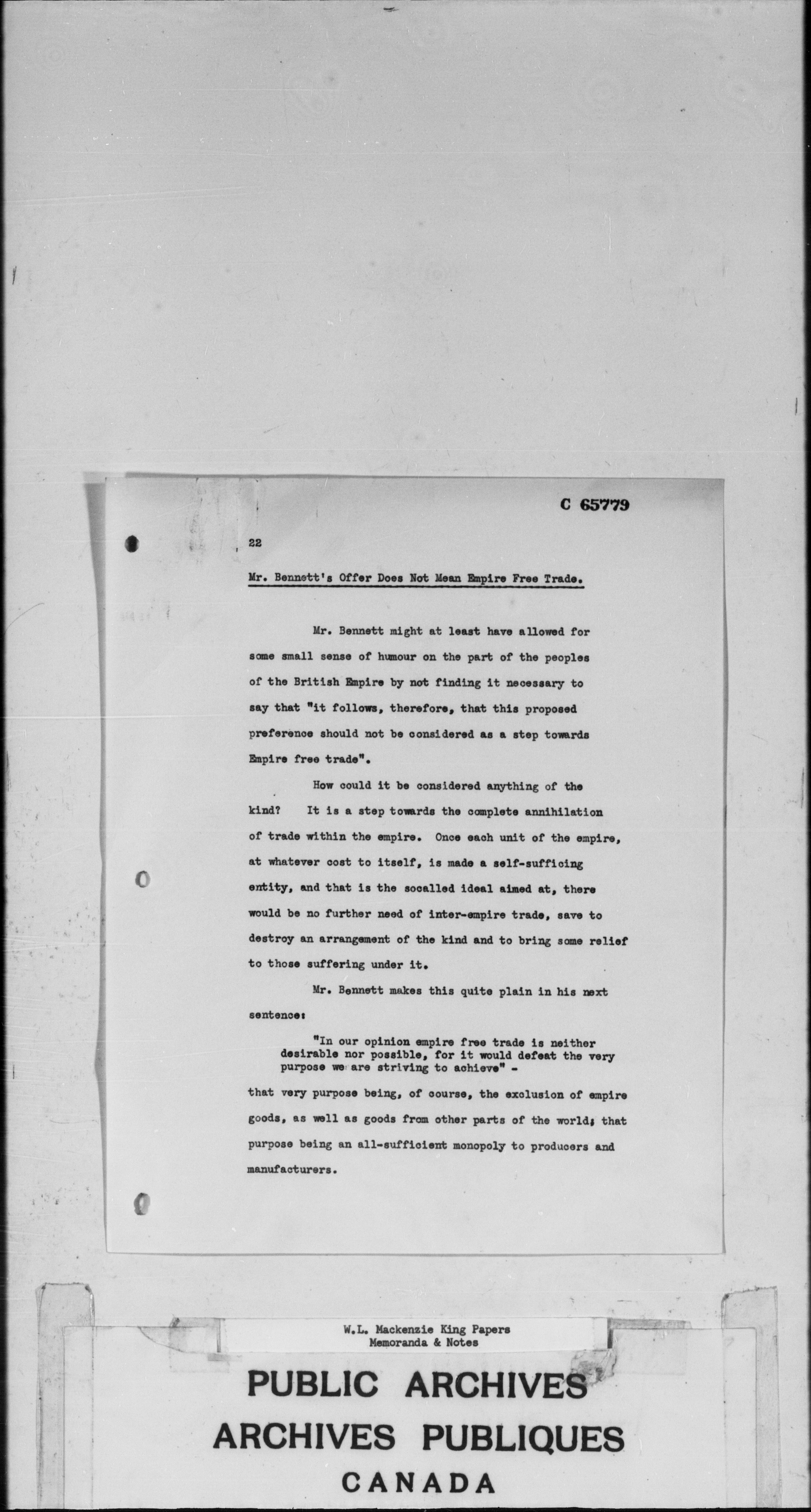 William Lyon Mackenzie King : Memoranda and notes (J4) : C-2698