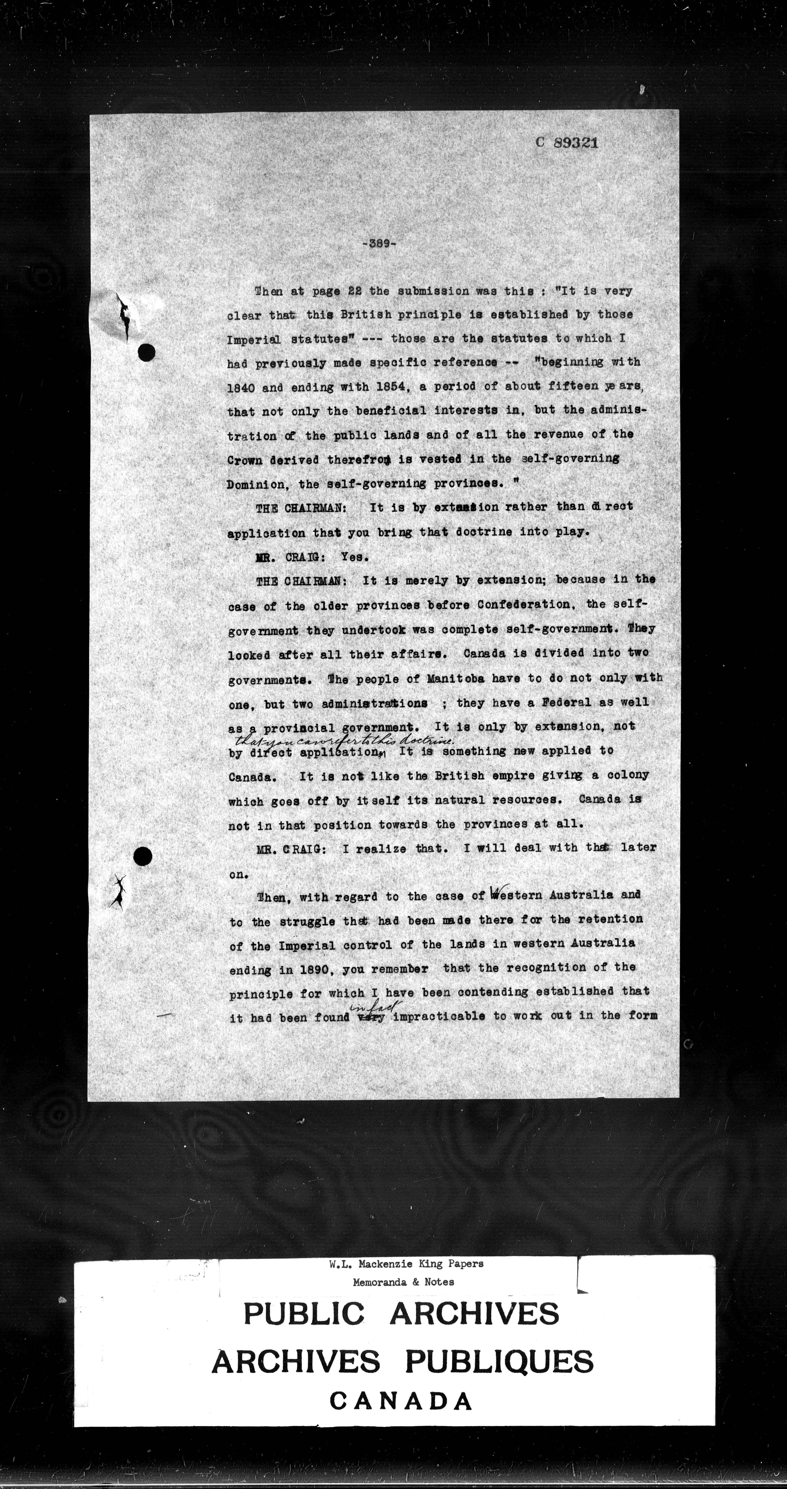 William Lyon Mackenzie King : Memoranda and notes (J4) : C-2717