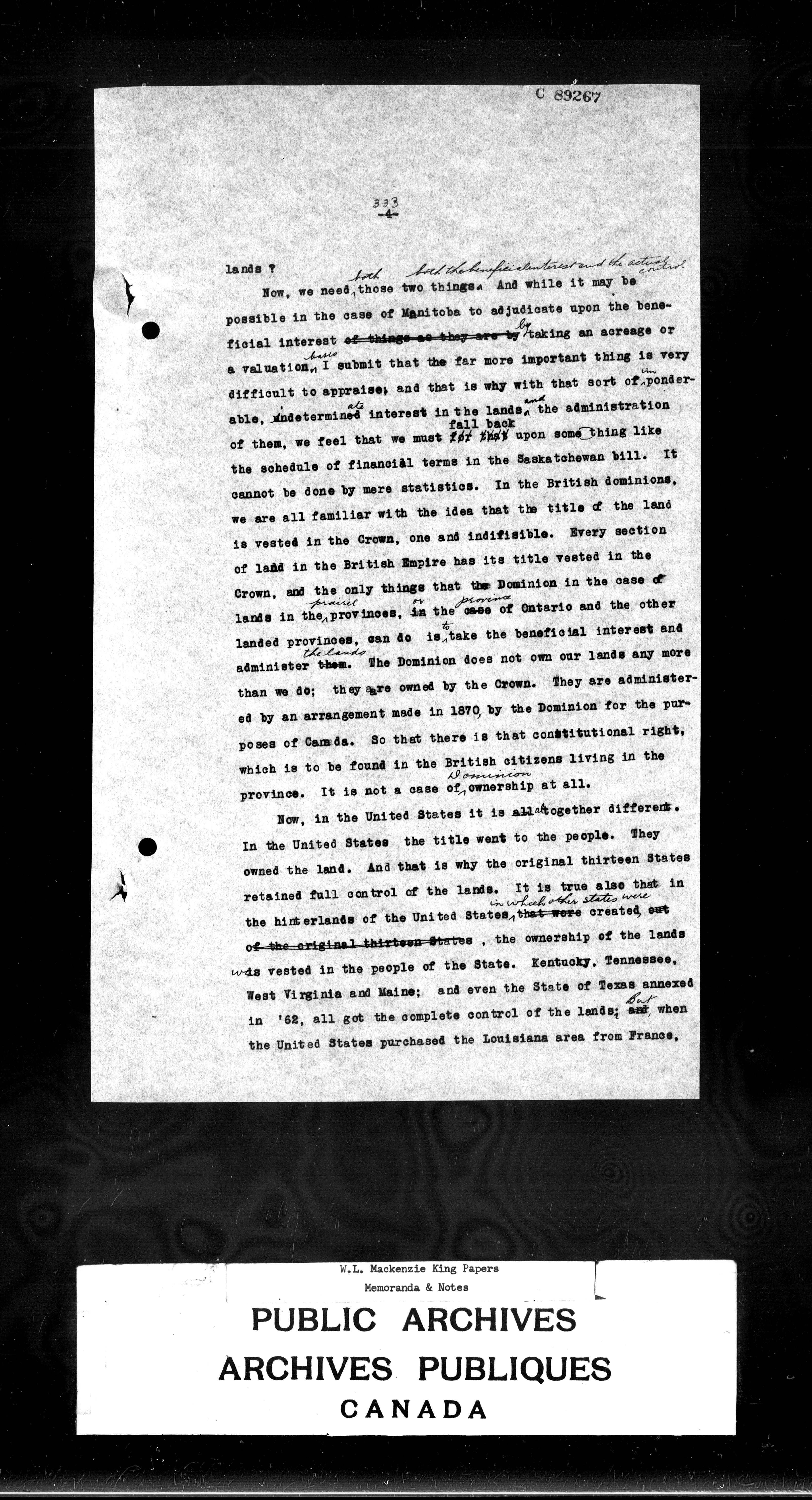 William Lyon Mackenzie King : Memoranda and notes (J4) : C-2717