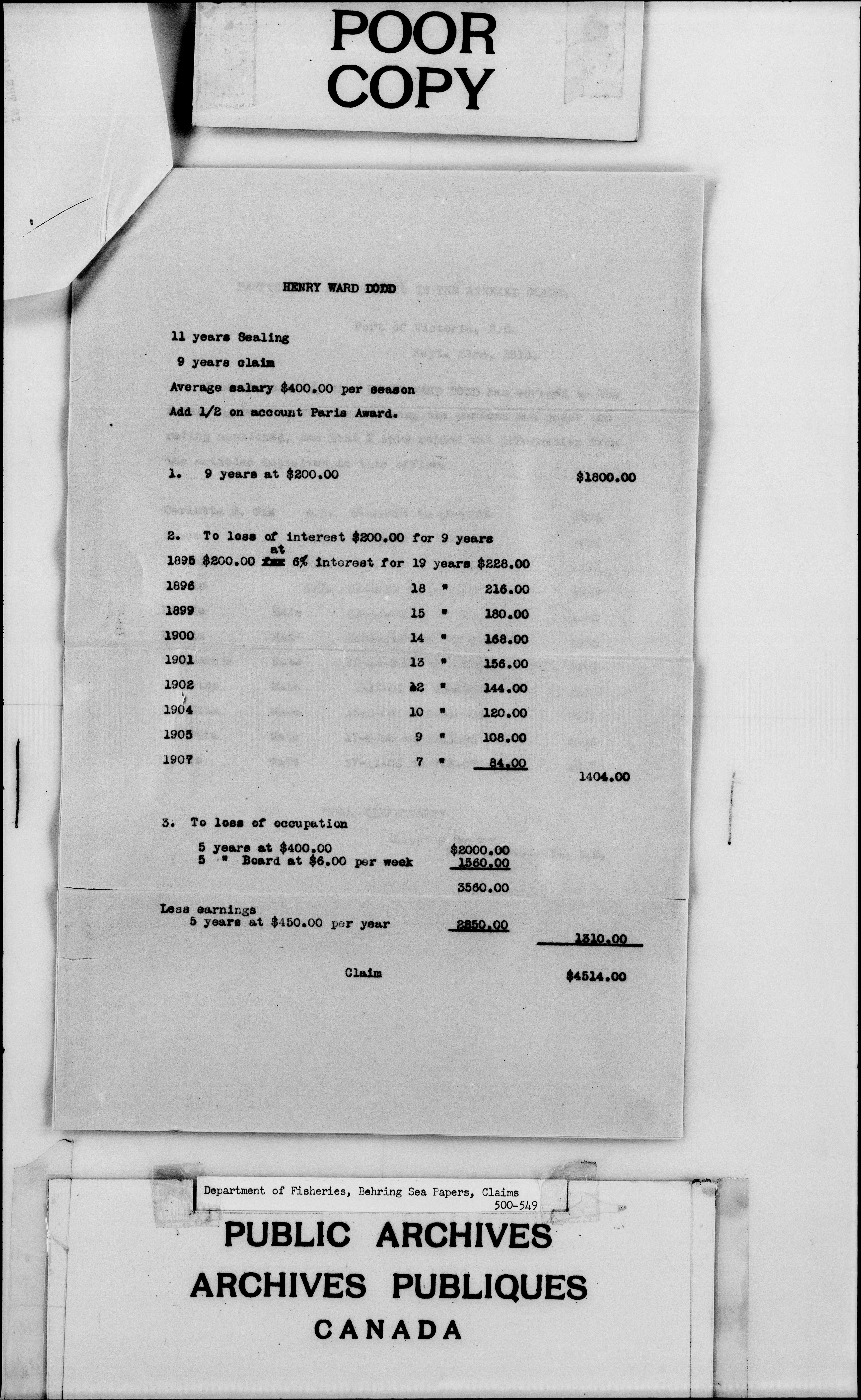 Behring Sea Papers: Claims 500-549, 600-699, 750-799 - 2764