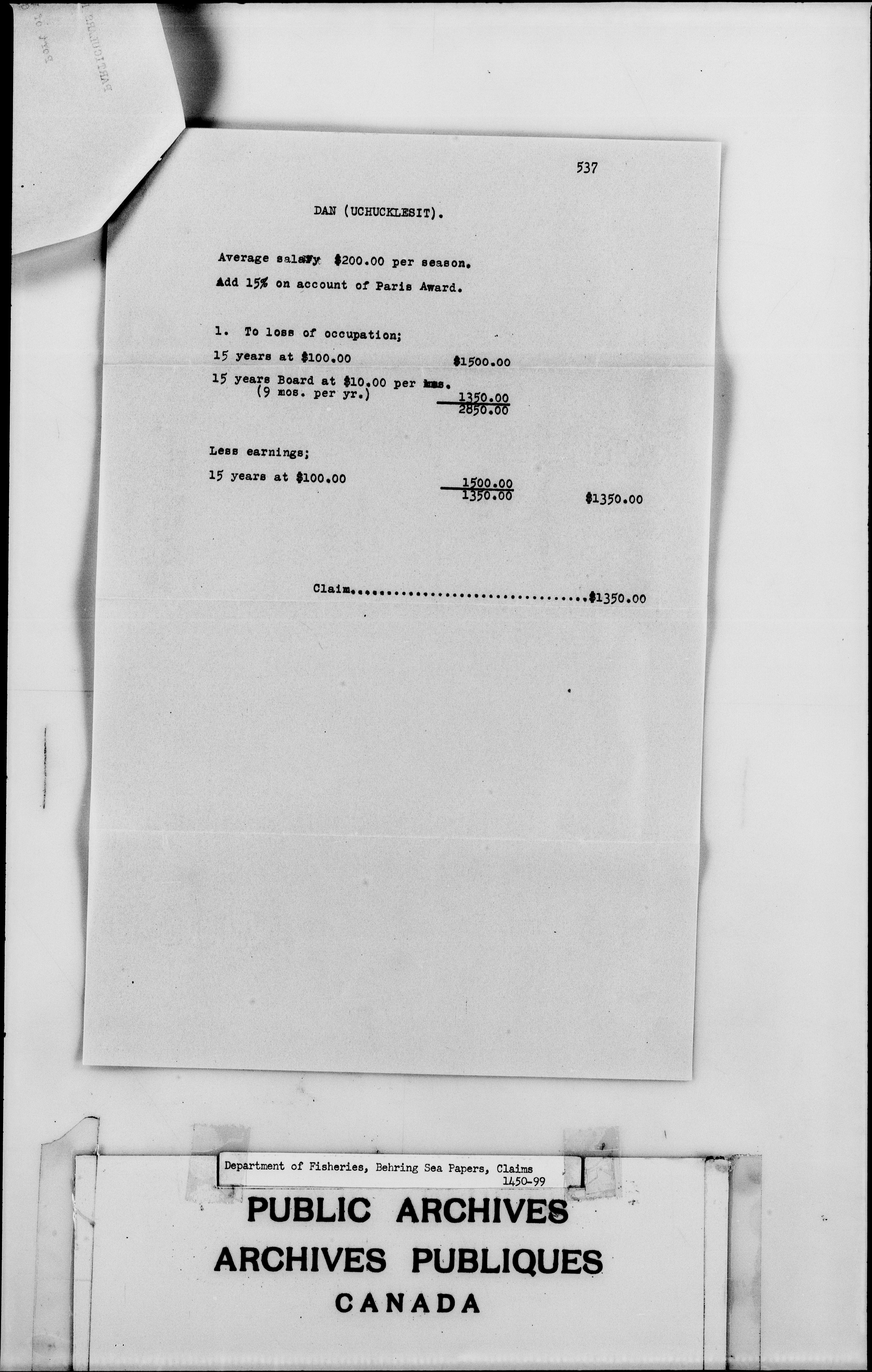 Baring Sea papers : Claims 1319-1399, 1427-1499 - 2767