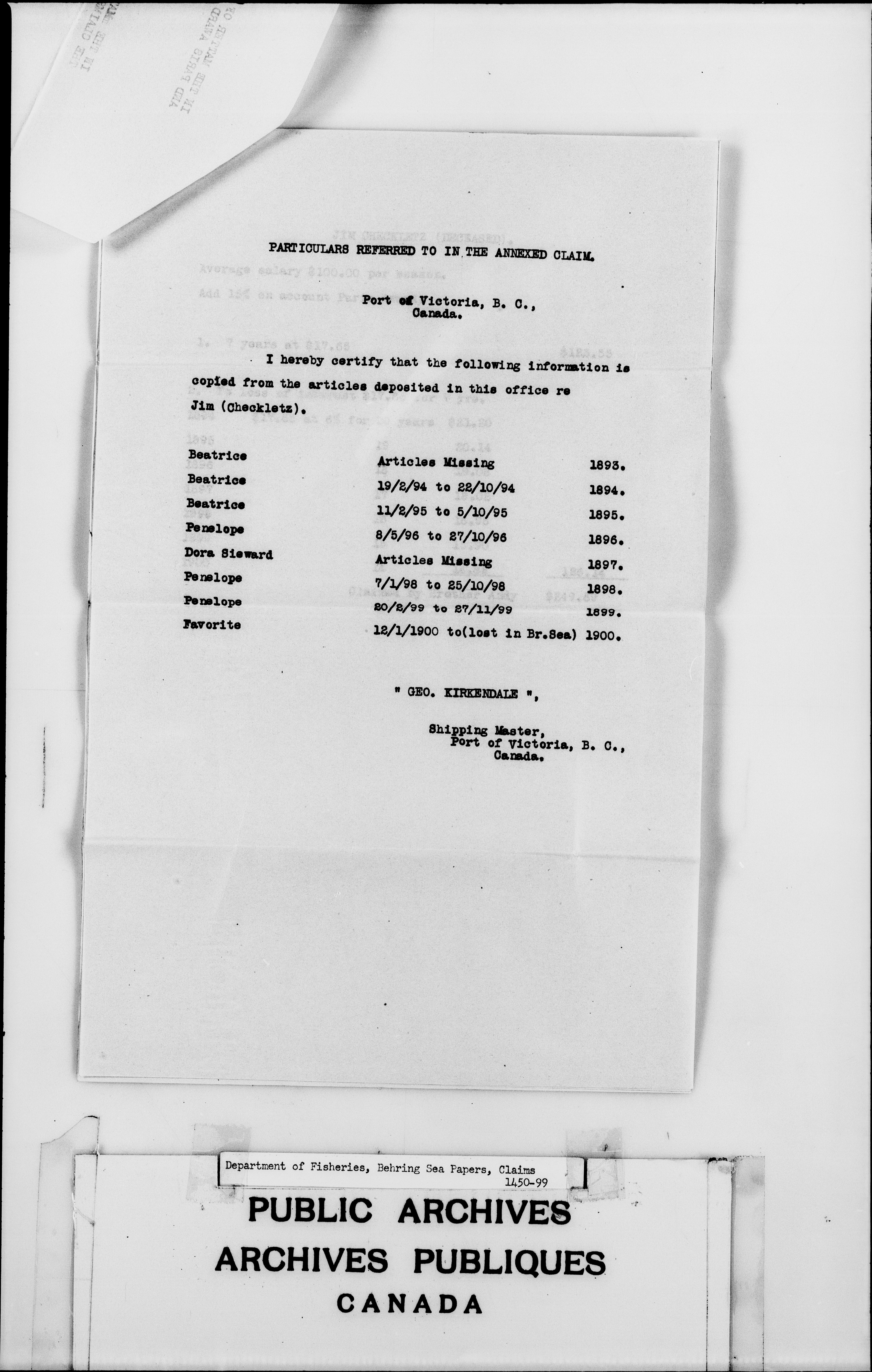 Baring Sea papers : Claims 1319-1399, 1427-1499 - 2767