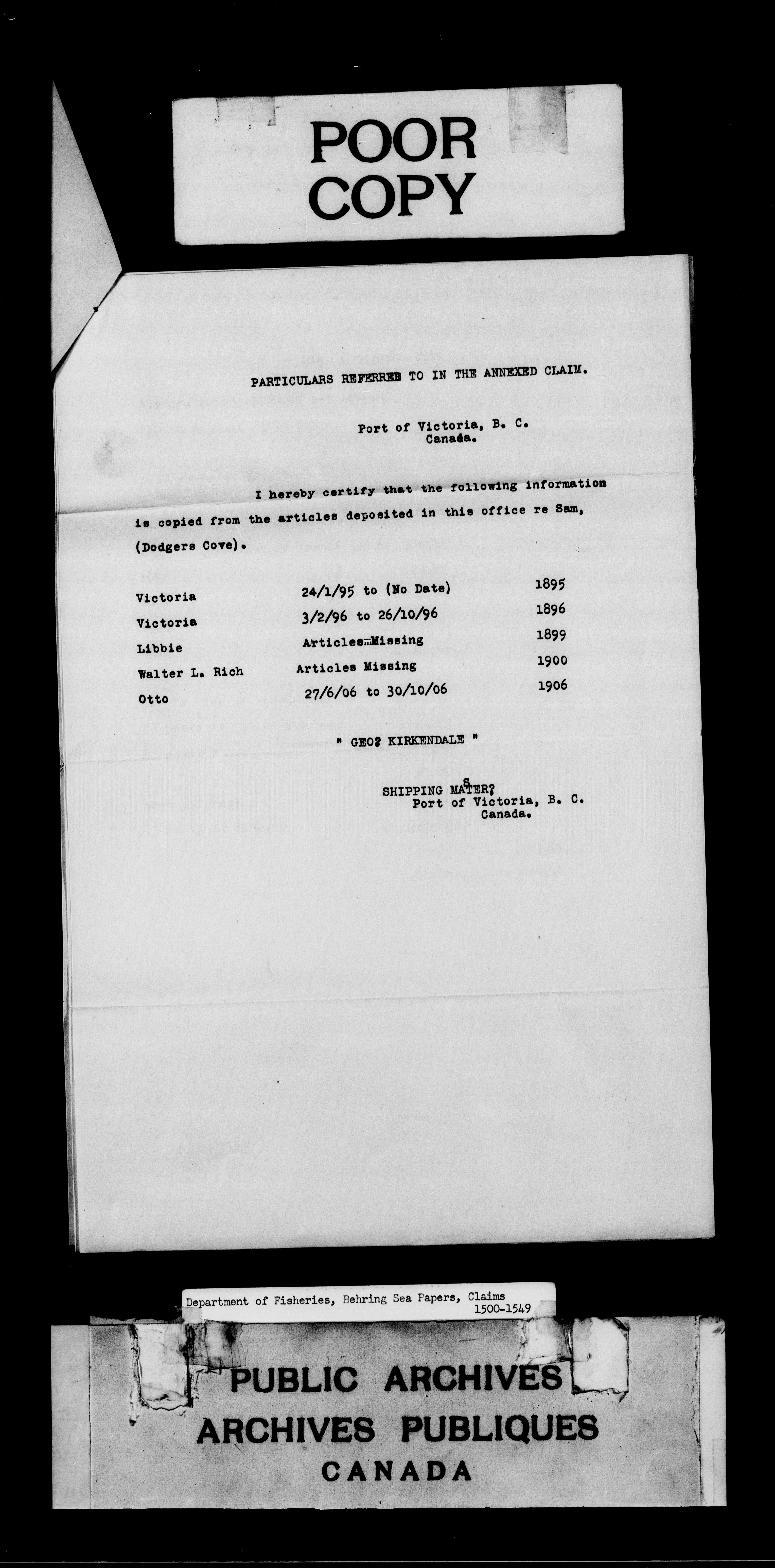 Behring Sea papers : Claims 1450-1599, 1600-1605 - 2768