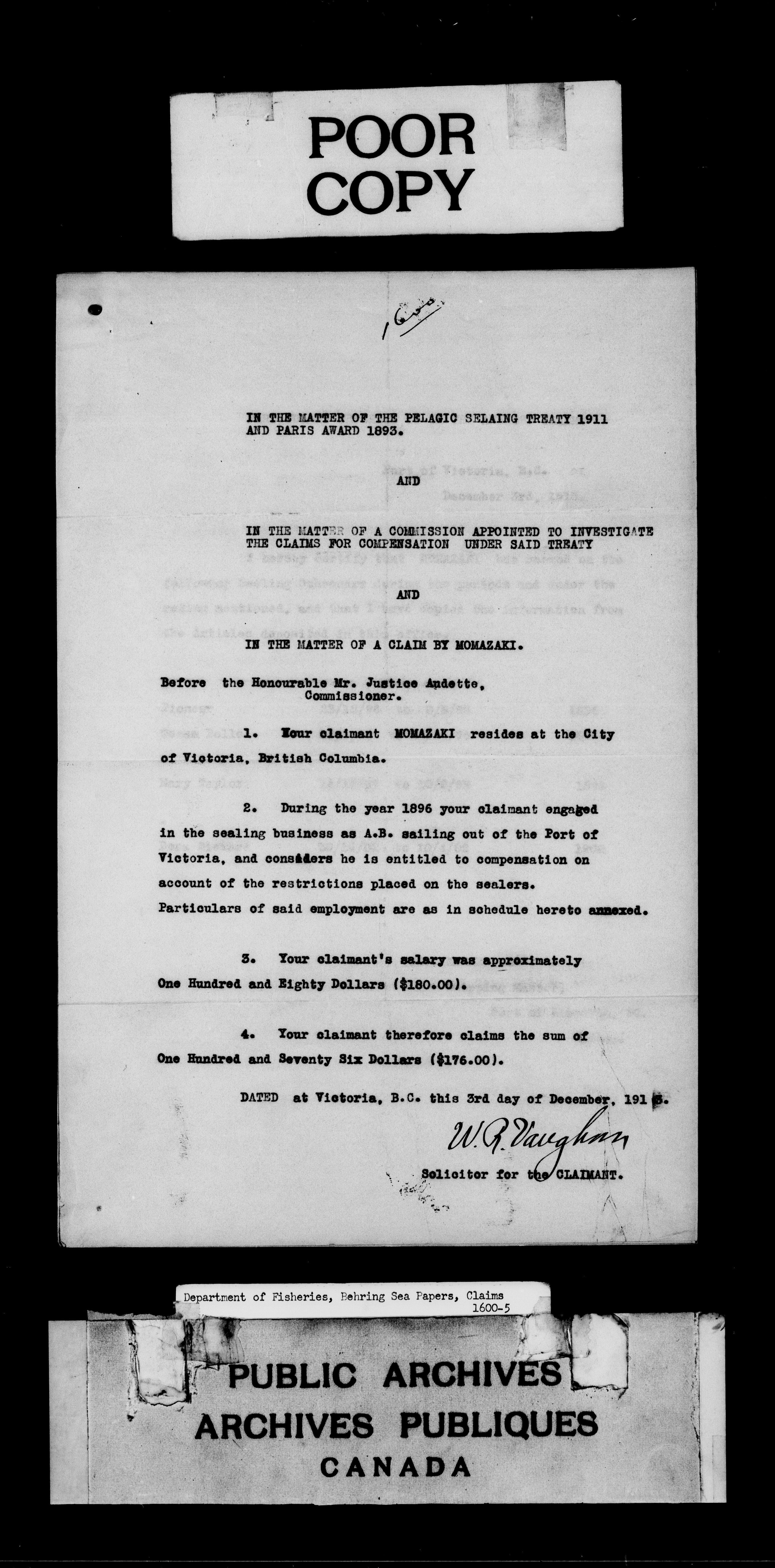 Behring Sea papers : Claims 1450-1599, 1600-1605 - 2768