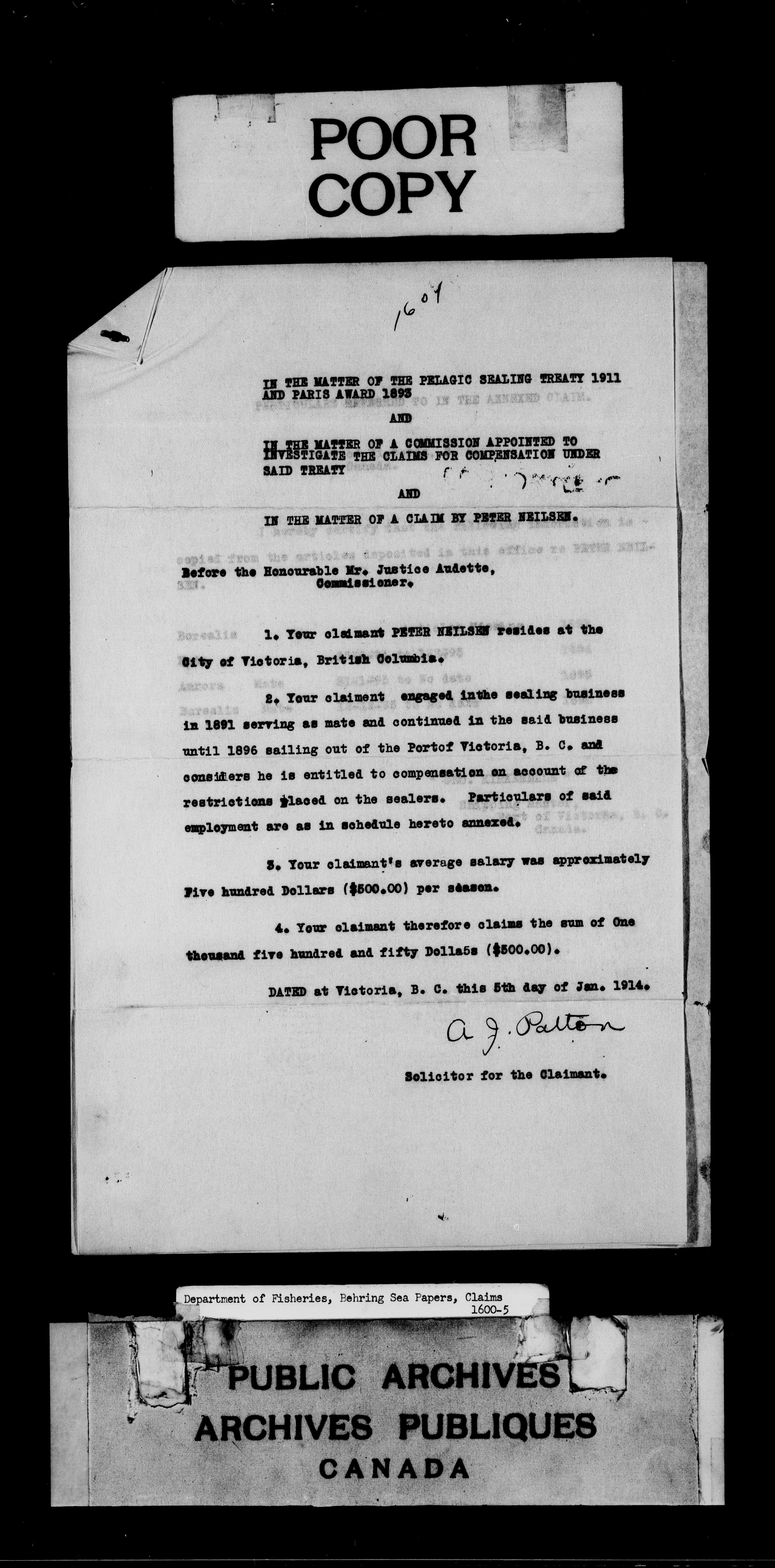 Behring Sea papers : Claims 1450-1599, 1600-1605 - 2768