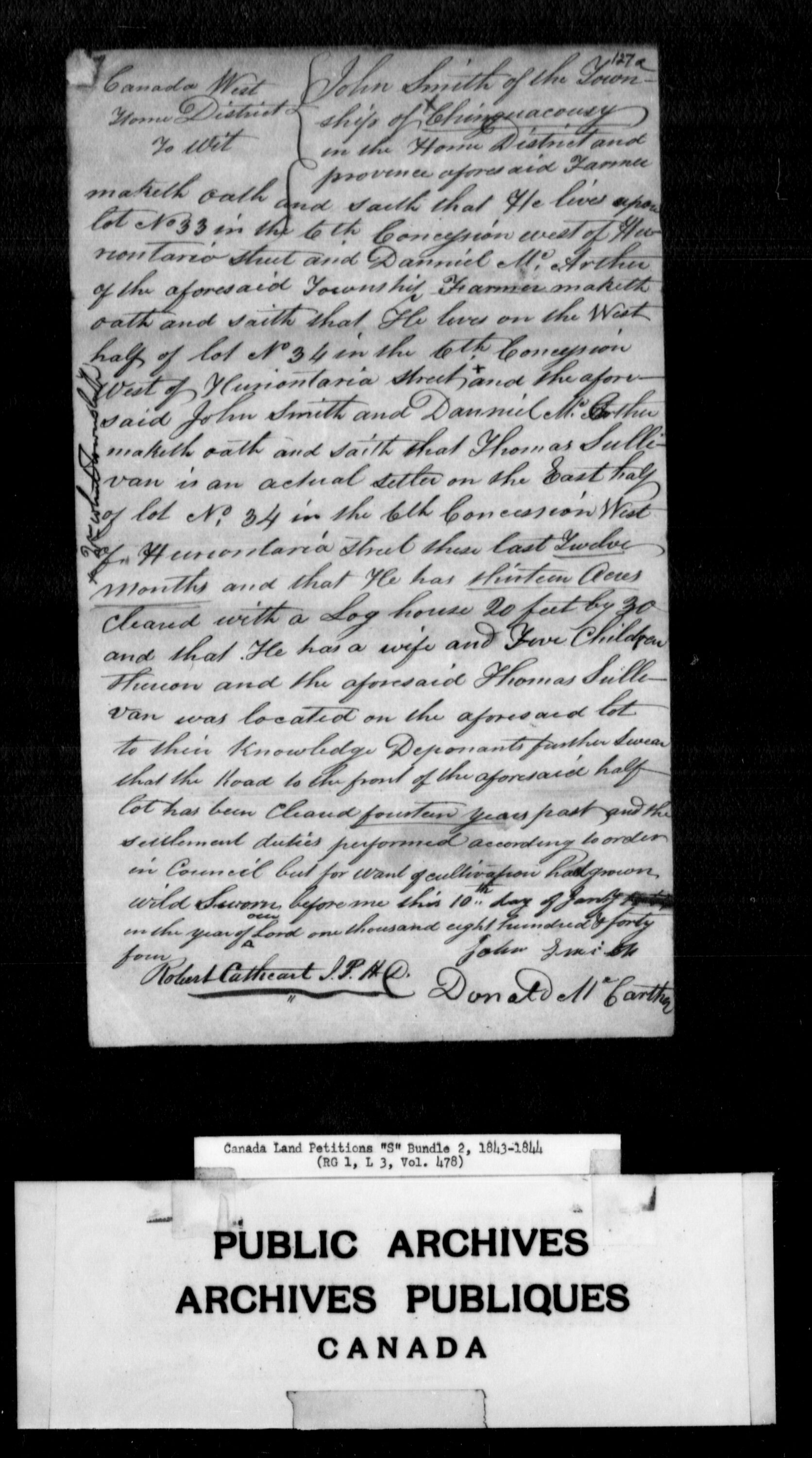 Land submissions to the Executive Council : Upper Canada Land Petitions "S" Bundle - C-2823