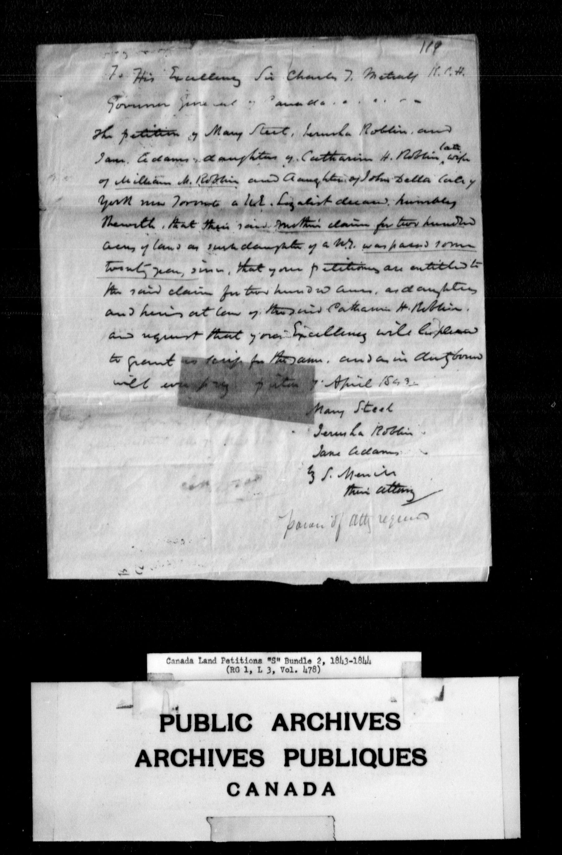Land submissions to the Executive Council : Upper Canada Land Petitions "S" Bundle - C-2823