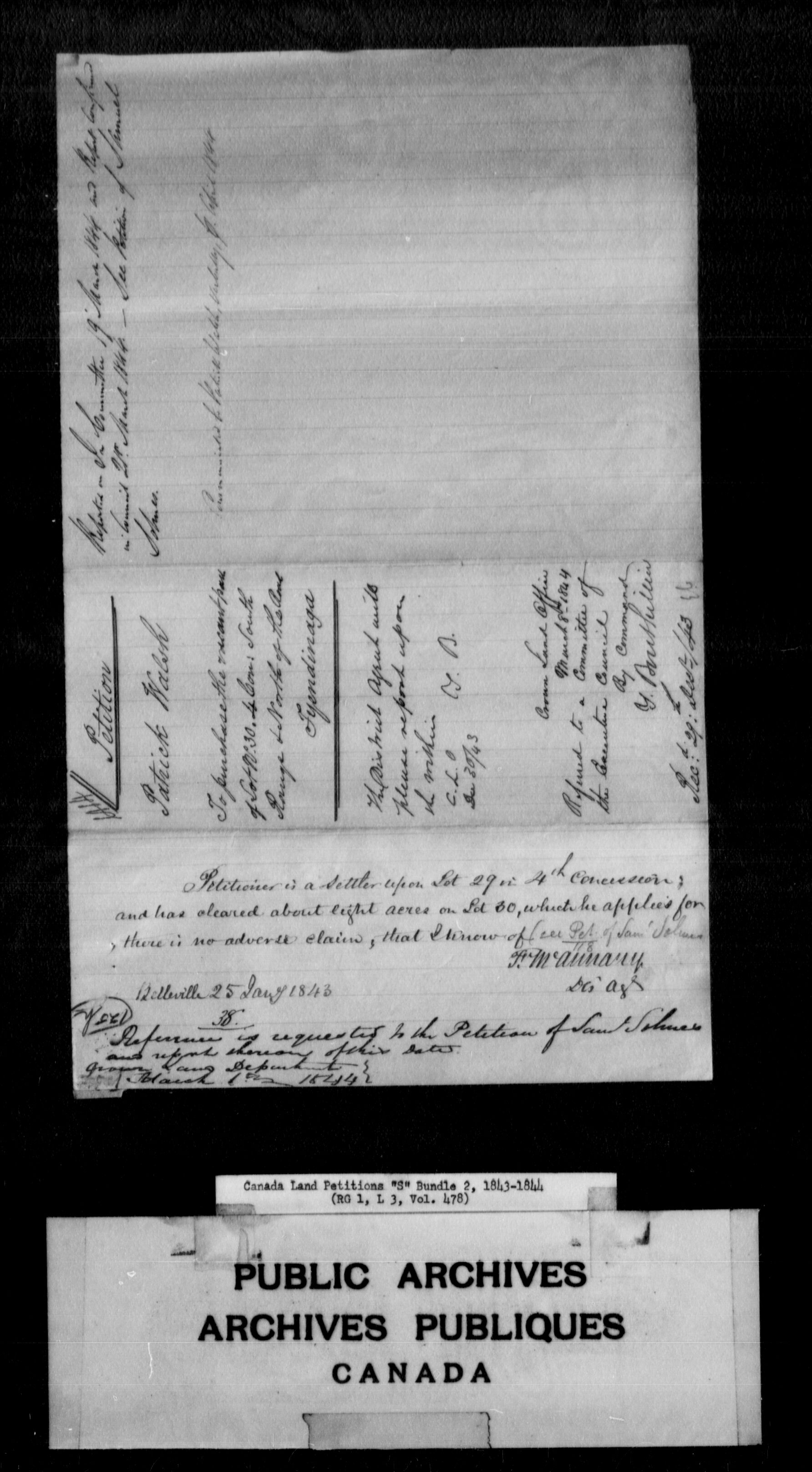 Land submissions to the Executive Council : Upper Canada Land Petitions "S" Bundle - C-2823