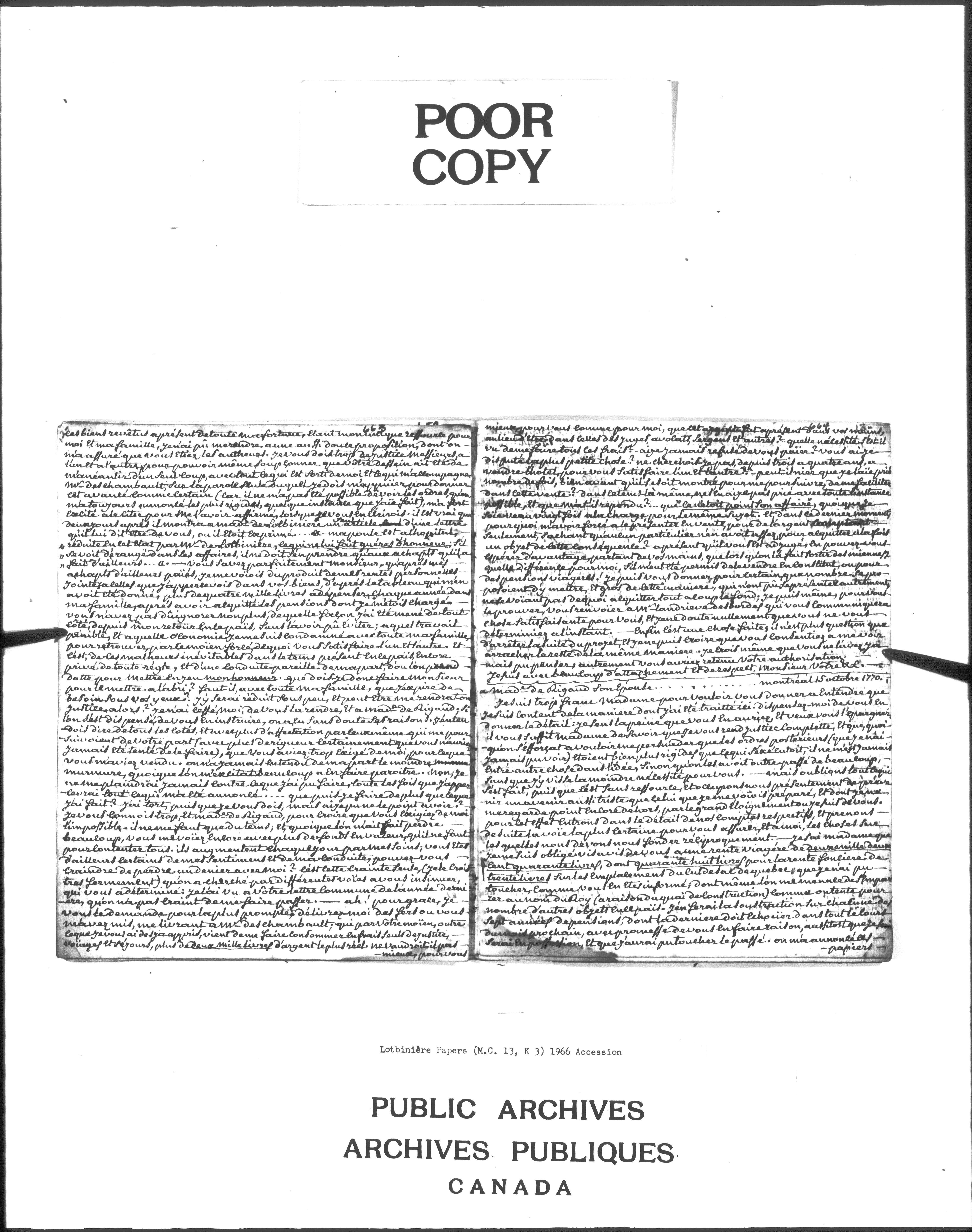 Collection Michel-Eustache-Gaspard Chartier de Lotbinière: Correspondance et documents divers : C-2882
