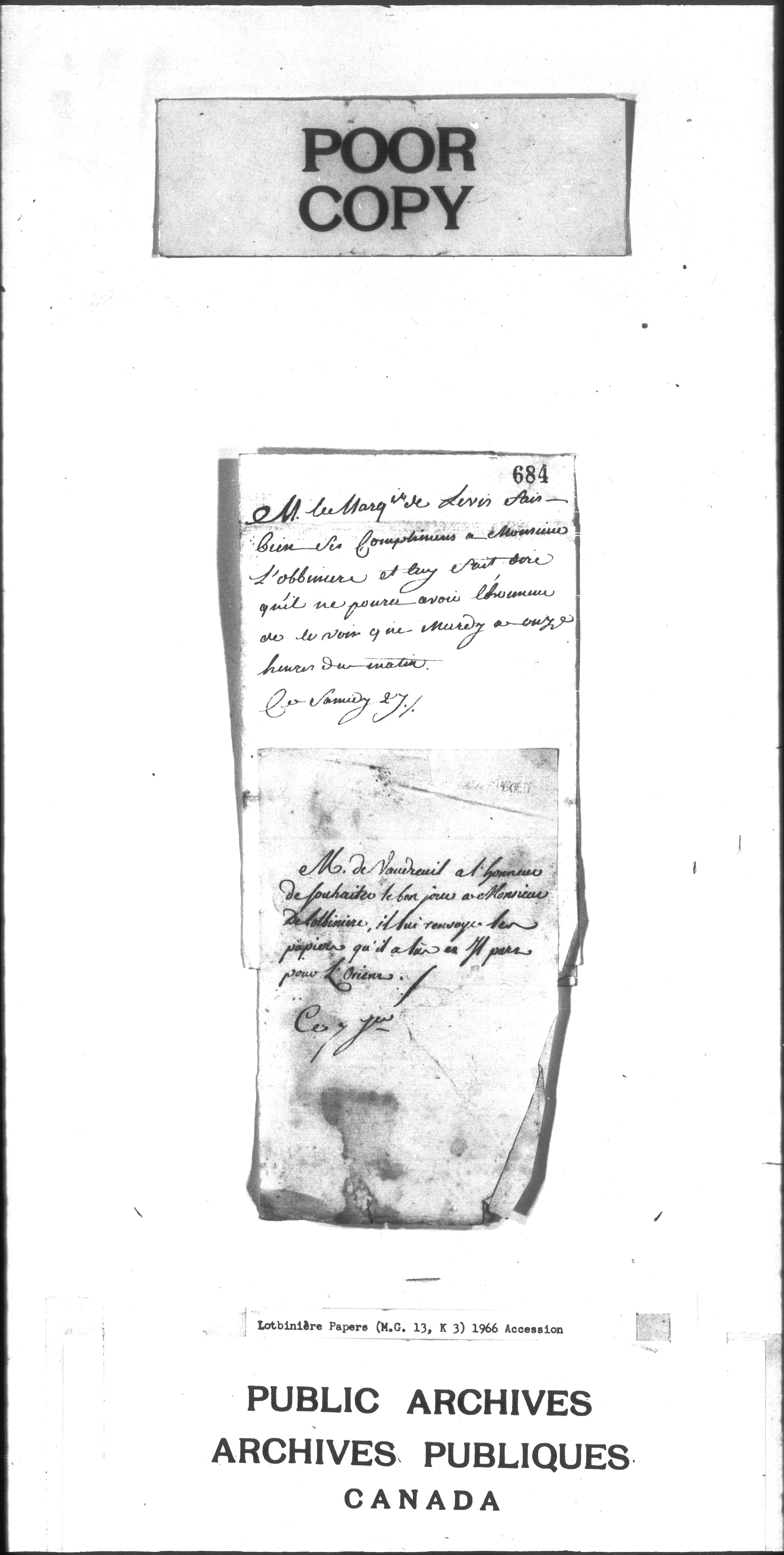 Collection Michel-Eustache-Gaspard Chartier de Lotbinière: Correspondance et documents divers : C-2882