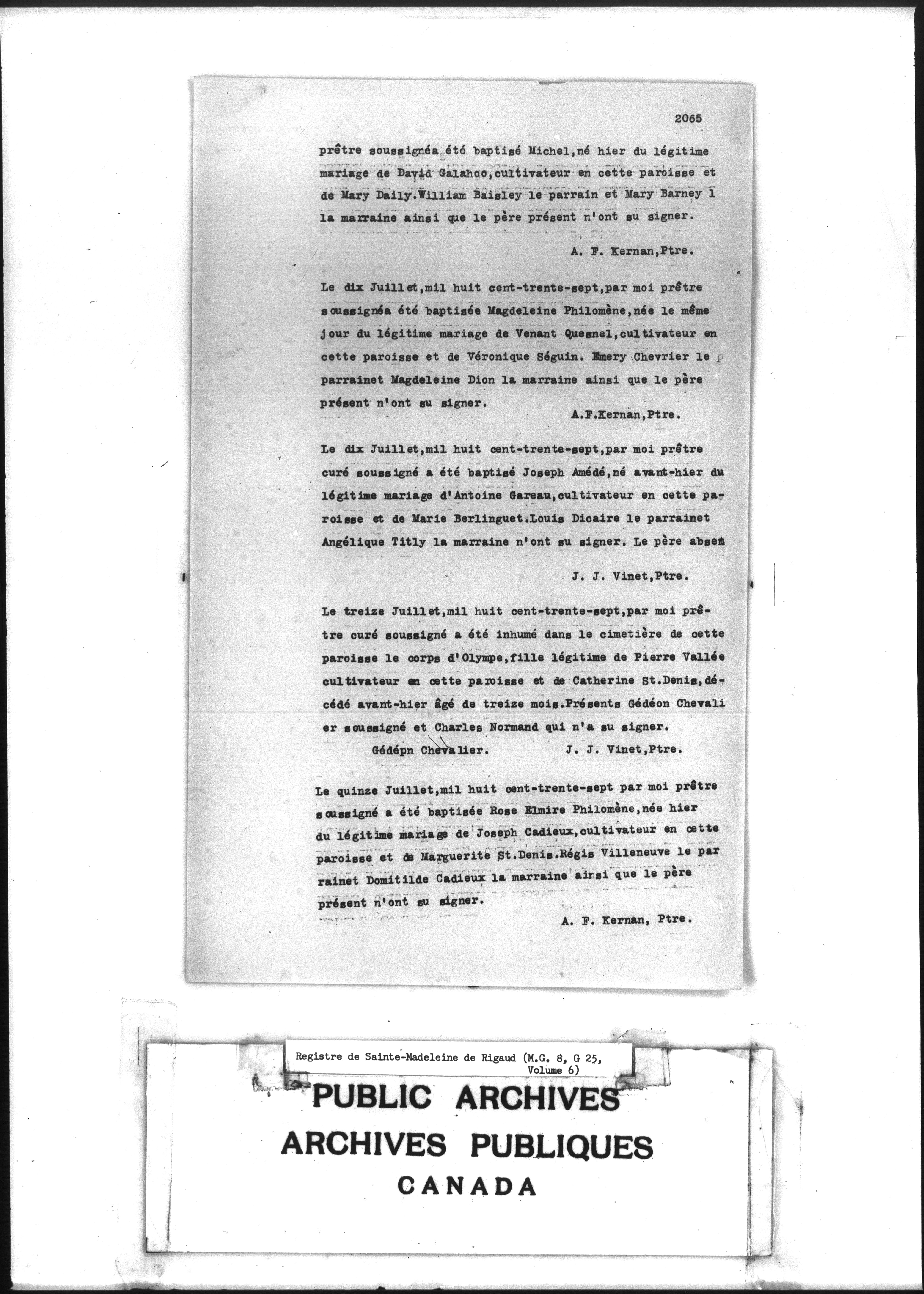 Fonds de la paroisse catholique Sainte-Magdeleine (Rigaud, Québec) - 2887