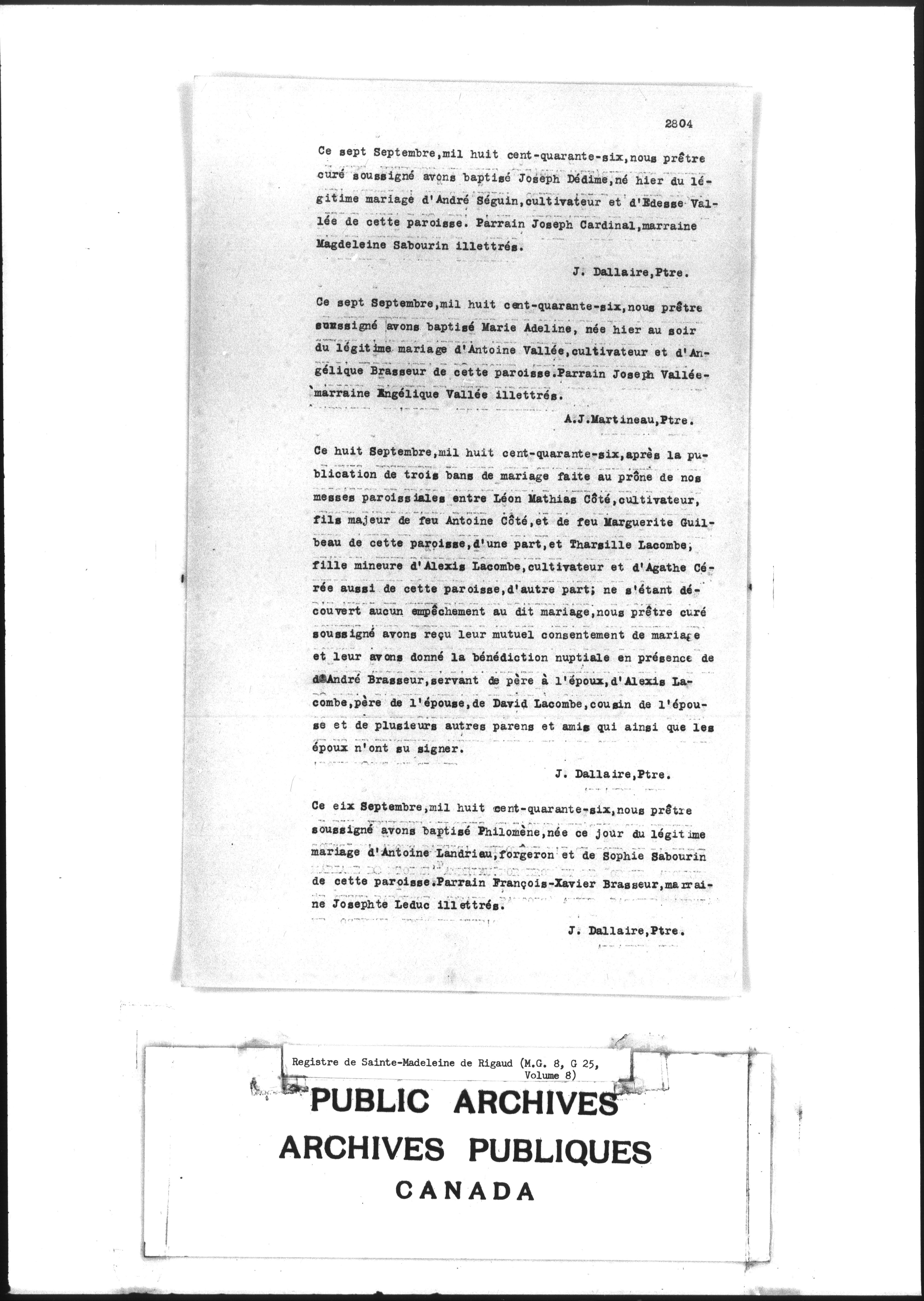 Fonds de la paroisse catholique Sainte-Magdeleine (Rigaud, Québec) - 2887
