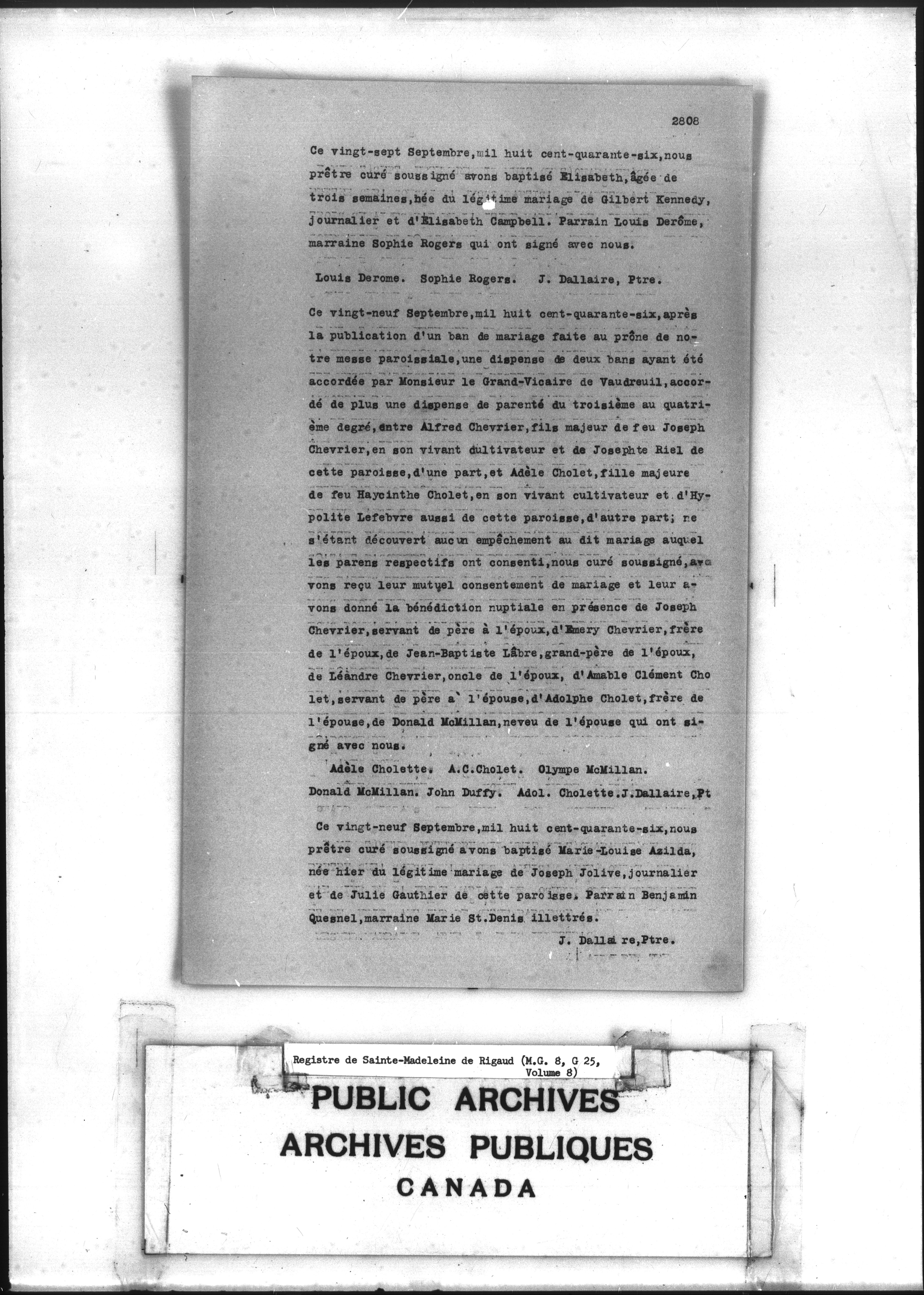 Fonds de la paroisse catholique Sainte-Magdeleine (Rigaud, Québec) - 2887