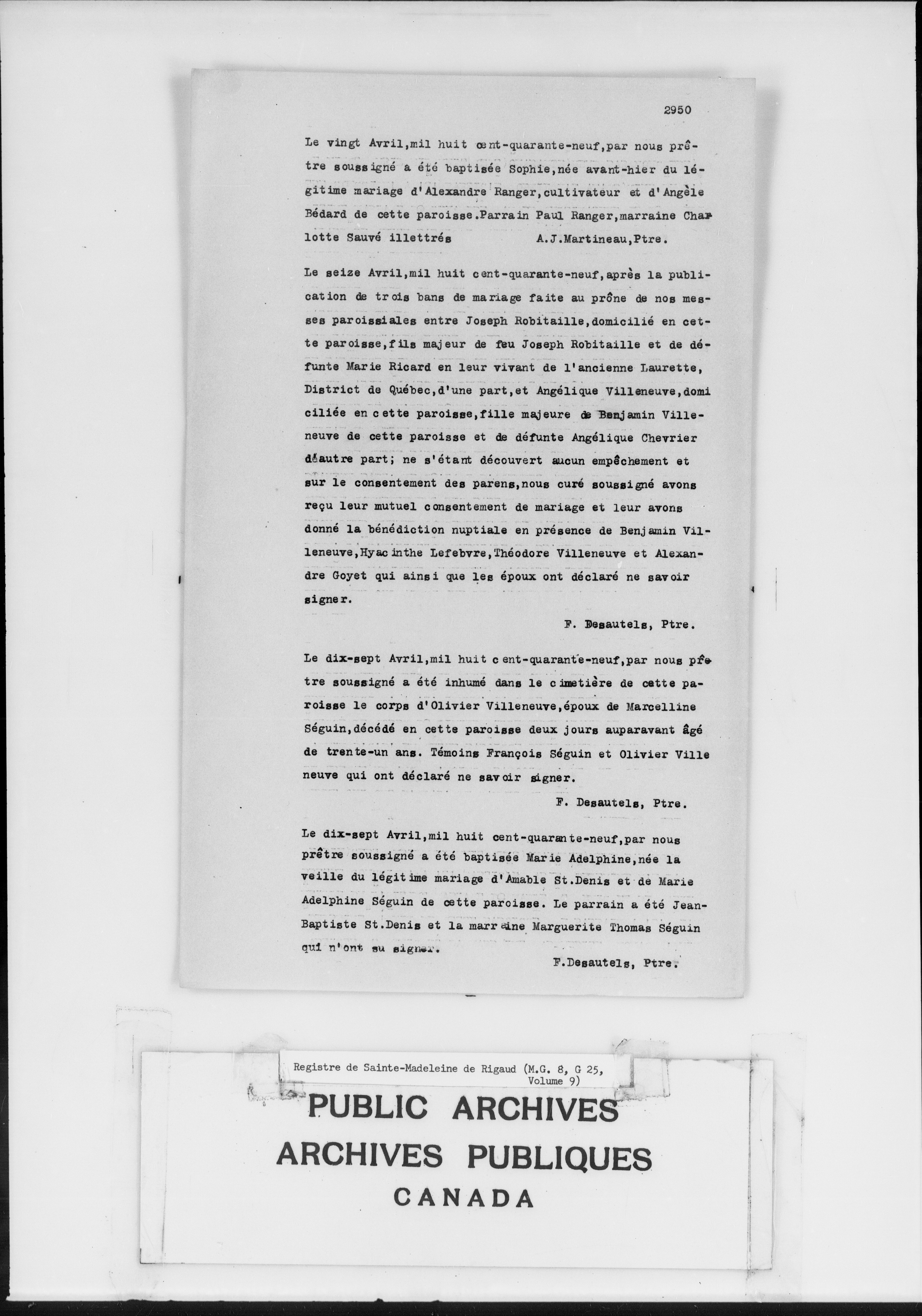 Fonds de la paroisse catholique Sainte-Magdeleine (Rigaud, Québec) - 2888