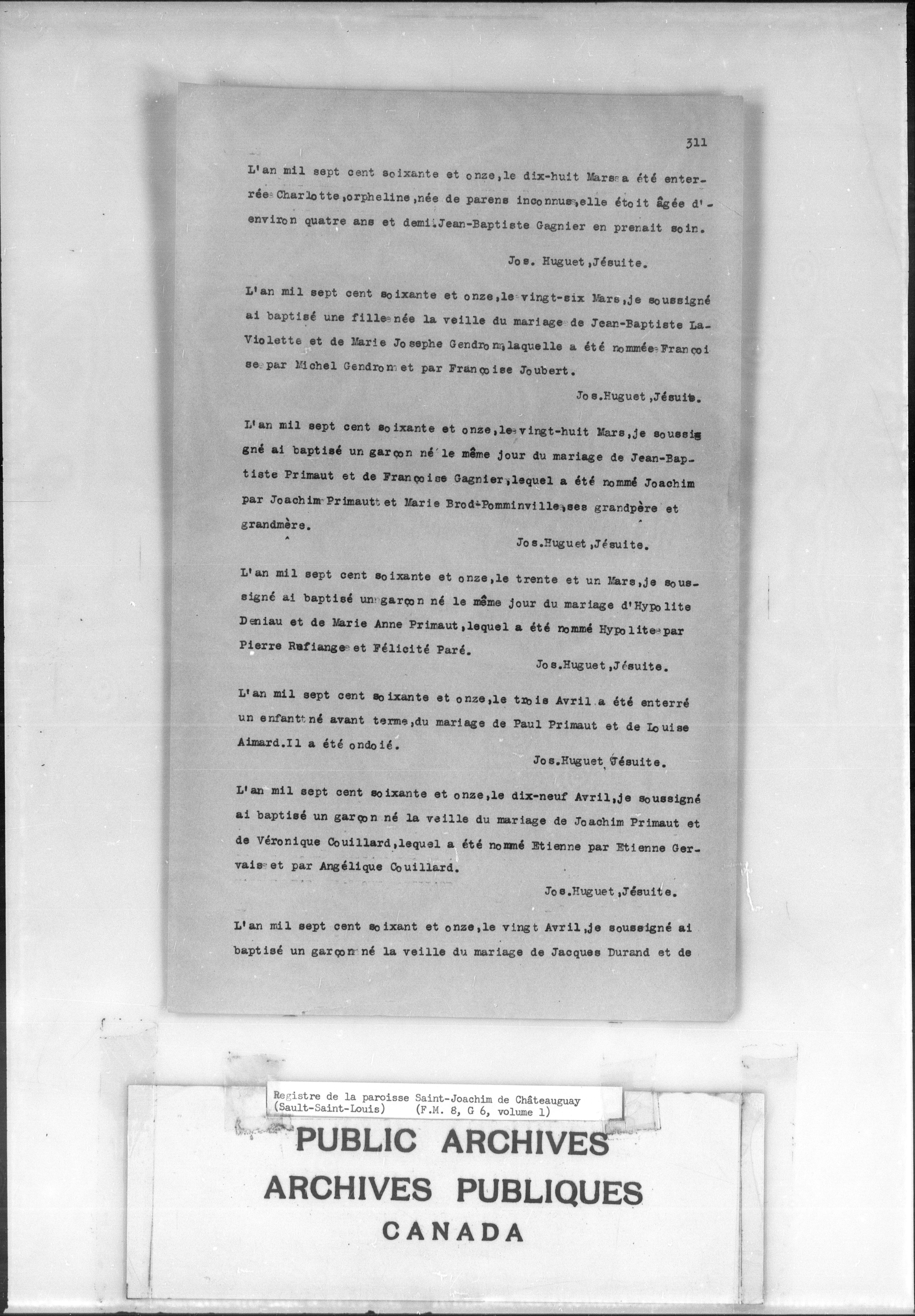 Fonds de la paroisse catholique de Saint-Joachim de Châteauguay, Québec - 2890