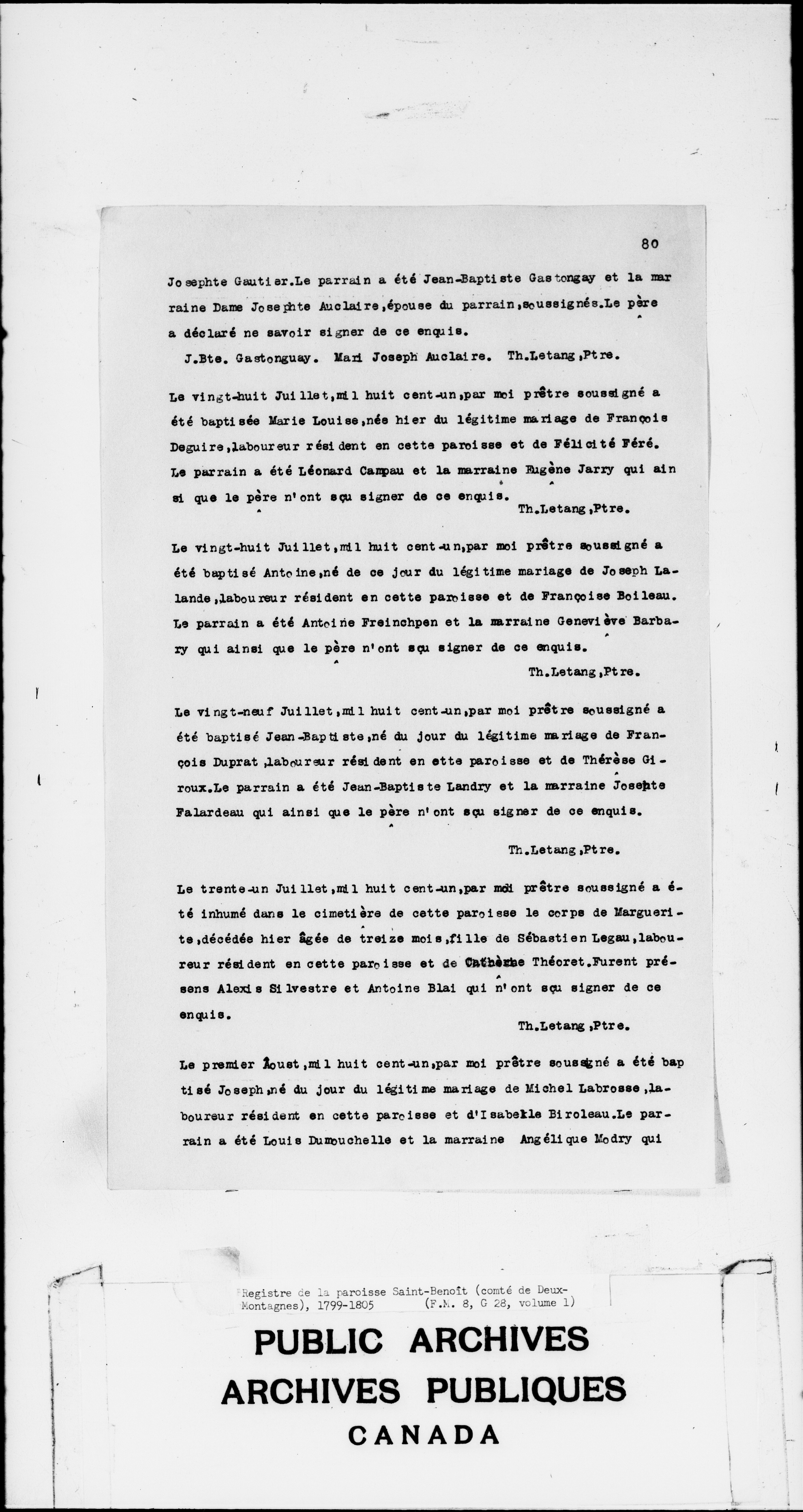 Fonds de la paroisse catholique Saint-Benoît-des-Deux-Montagnes, Québec - 2905