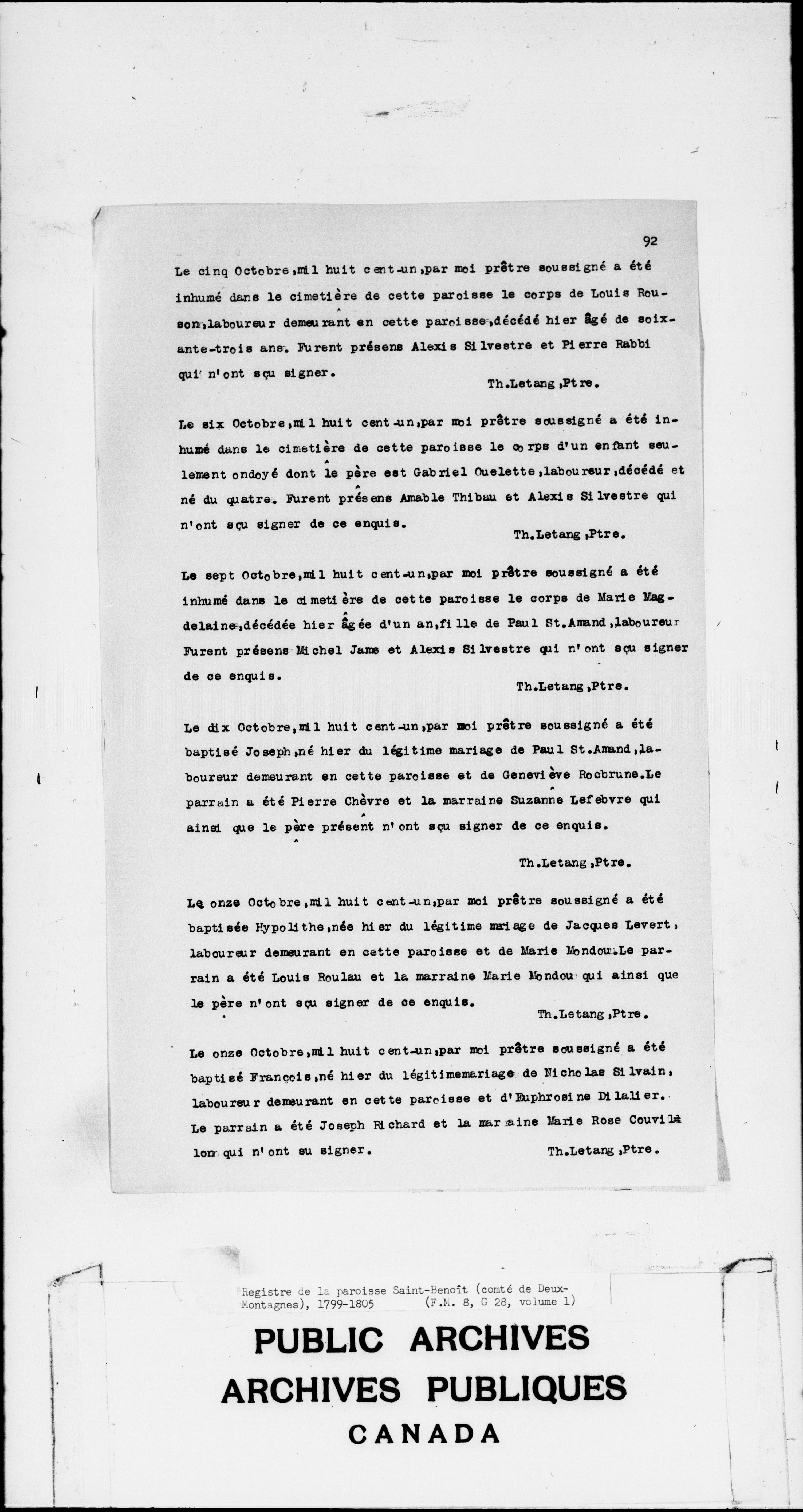 Fonds de la paroisse catholique Saint-Benoît-des-Deux-Montagnes, Québec - 2905