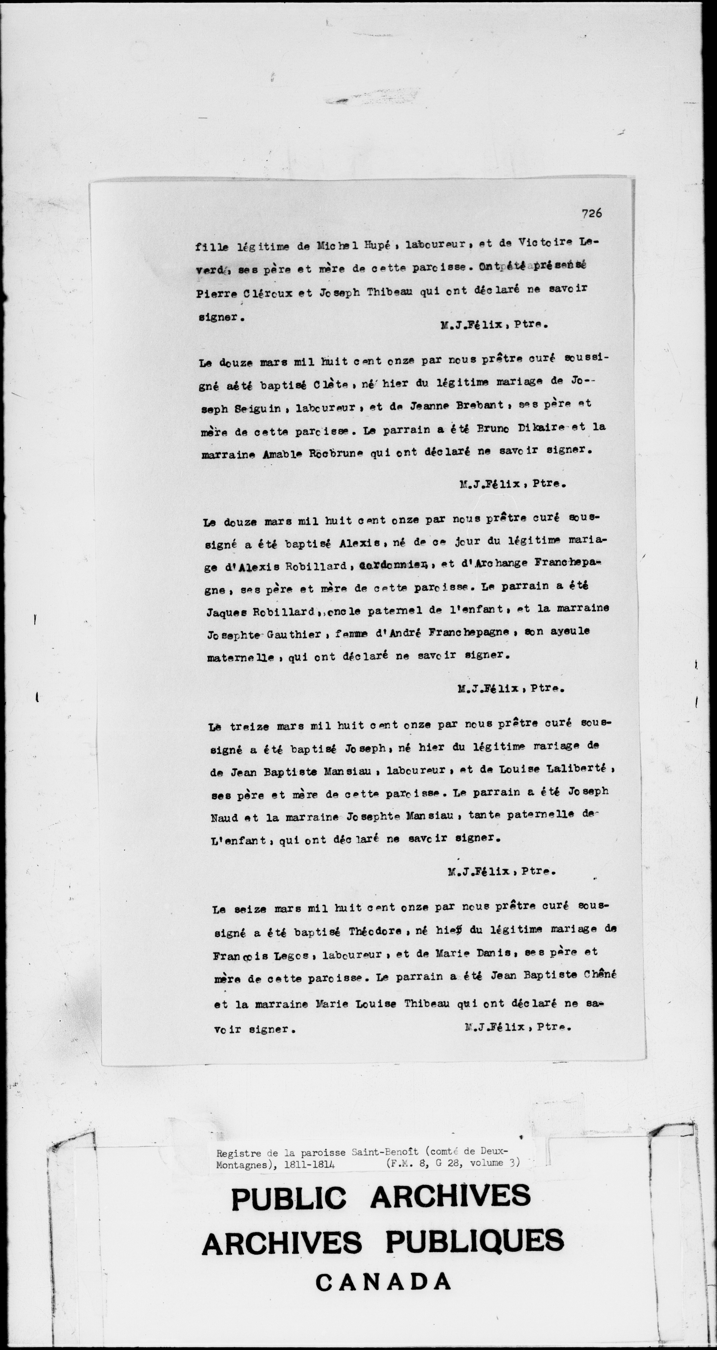 Fonds de la paroisse catholique Saint-Benoît-des-Deux-Montagnes, Québec - 2906