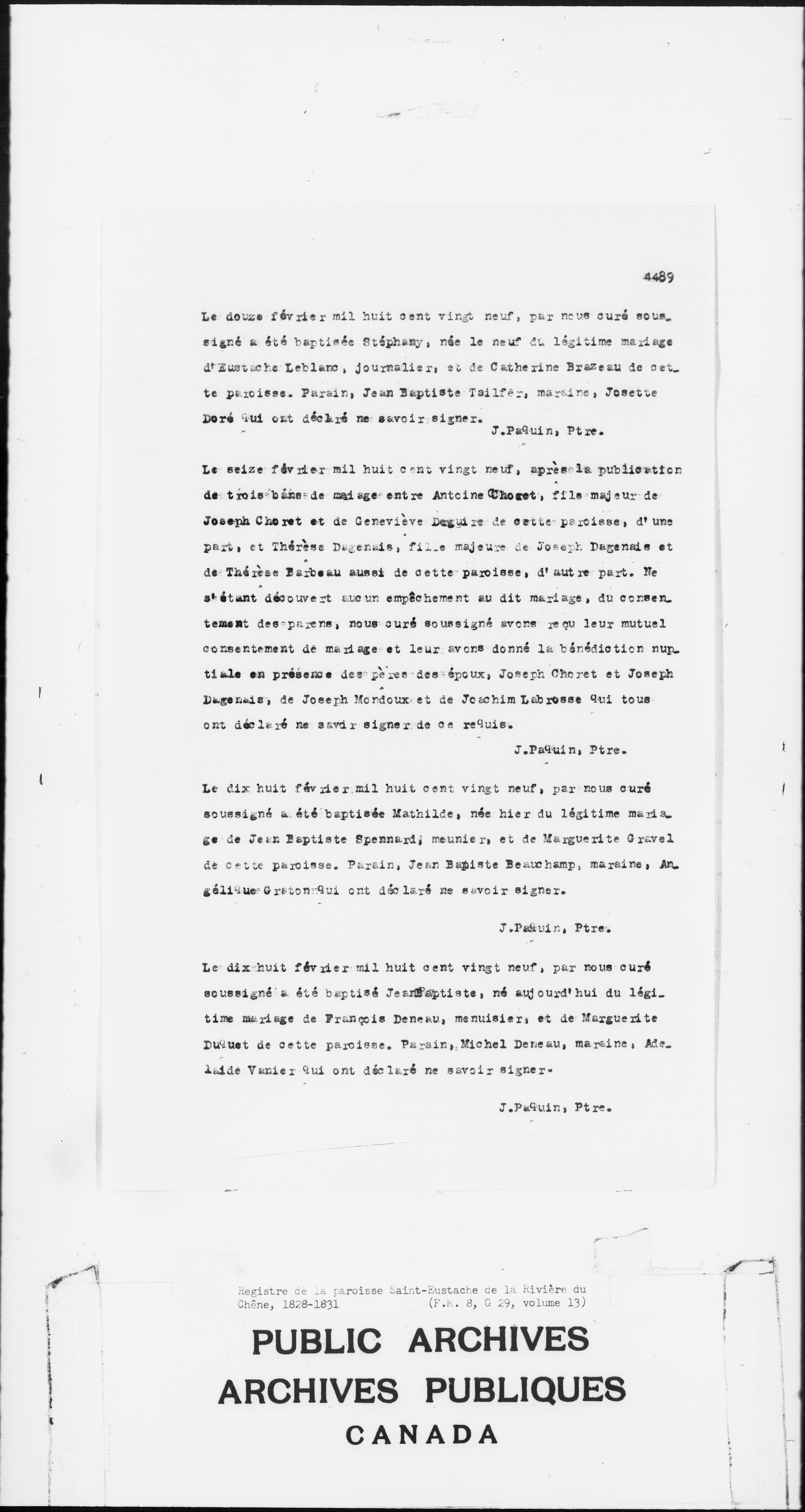 Fonds de la paroisse catholique Saint-Eustache-de-la-Rivière-du-Chêne (Québec) - 2911