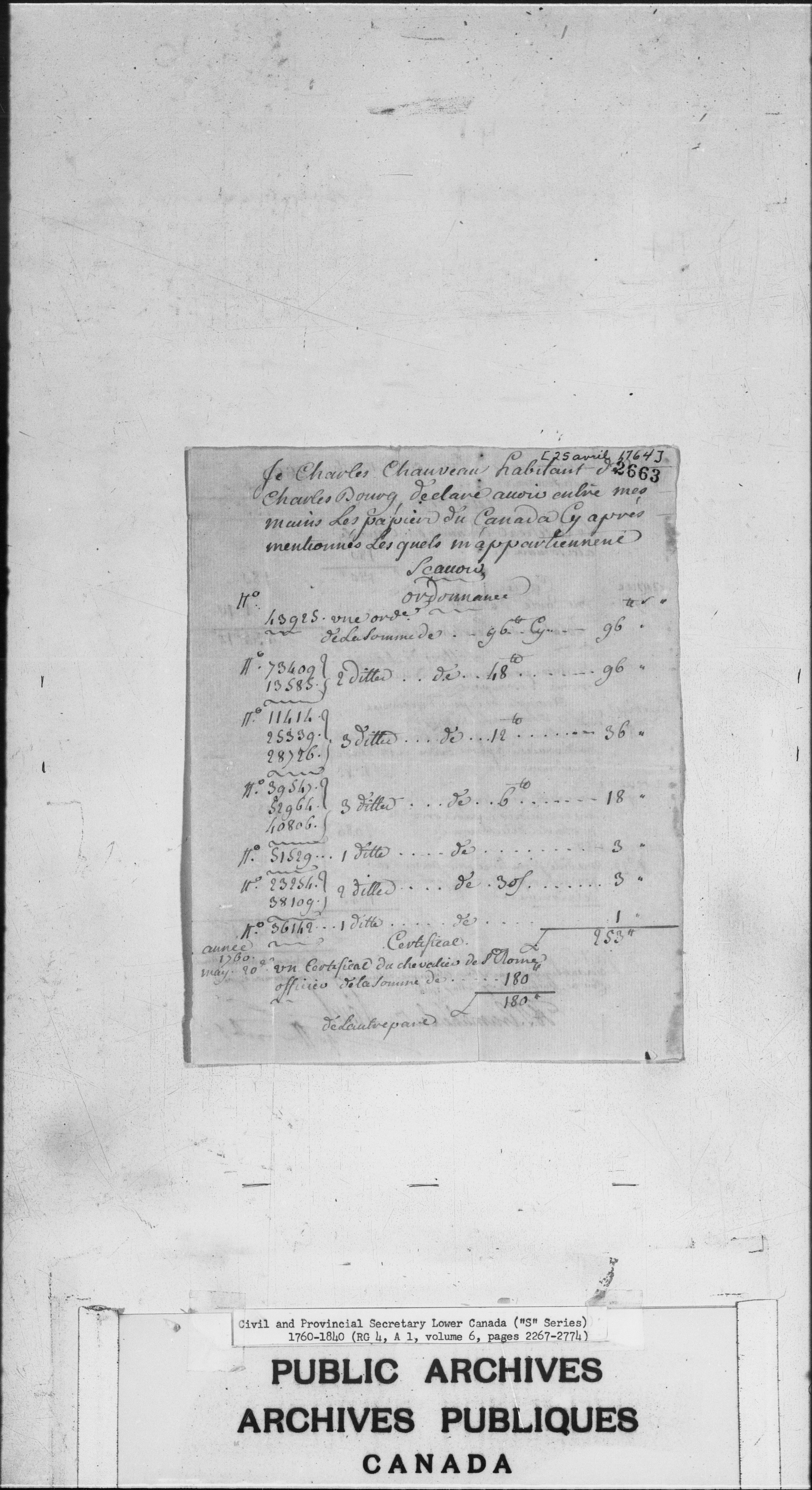 Civil Secretary's correspondence : A1 -S Series, Quebec and Lower Canada, 1760-1840 - 2995