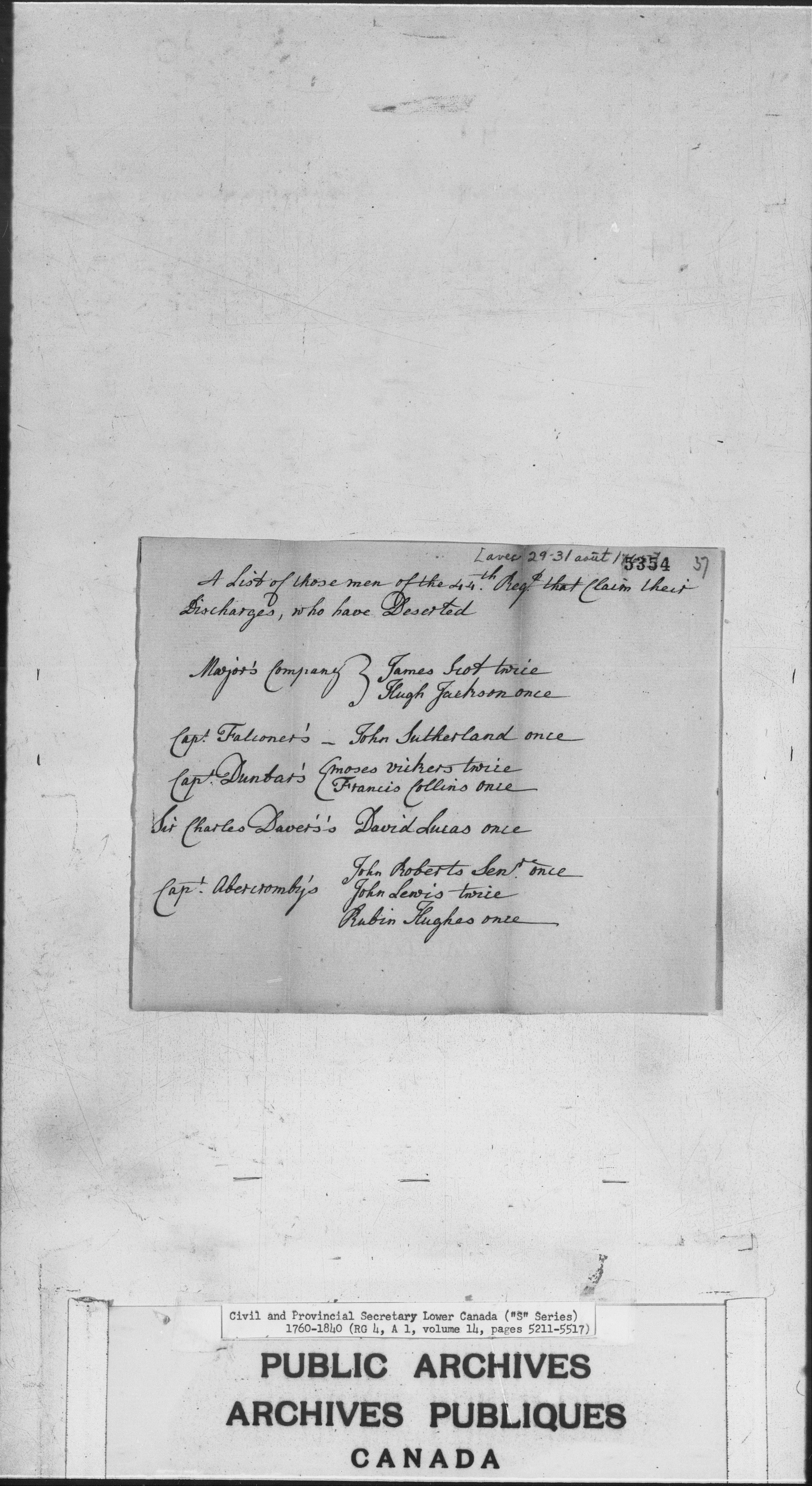 Civil Secretary's correspondence : A 1 - S Series : Quebec and Lower Canada : C-2998