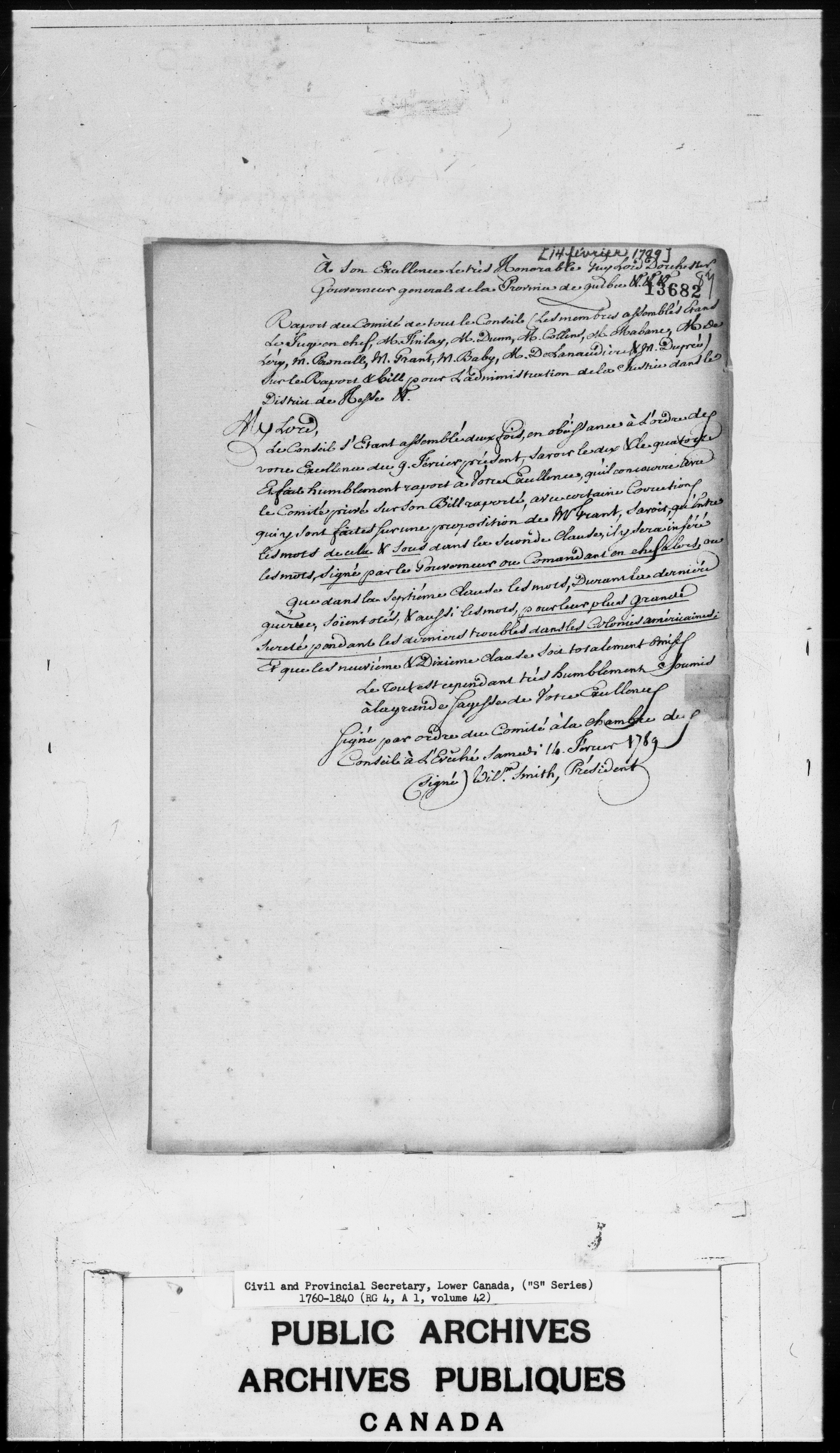 Civil Secretary's correspondence : A1 -S Series, Quebec and Lower Canada, 1760-1840 - 3004